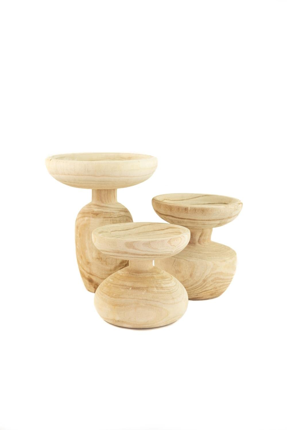 Kalalou Cfan1046 Set Of Three Turned Wooden Pedestals