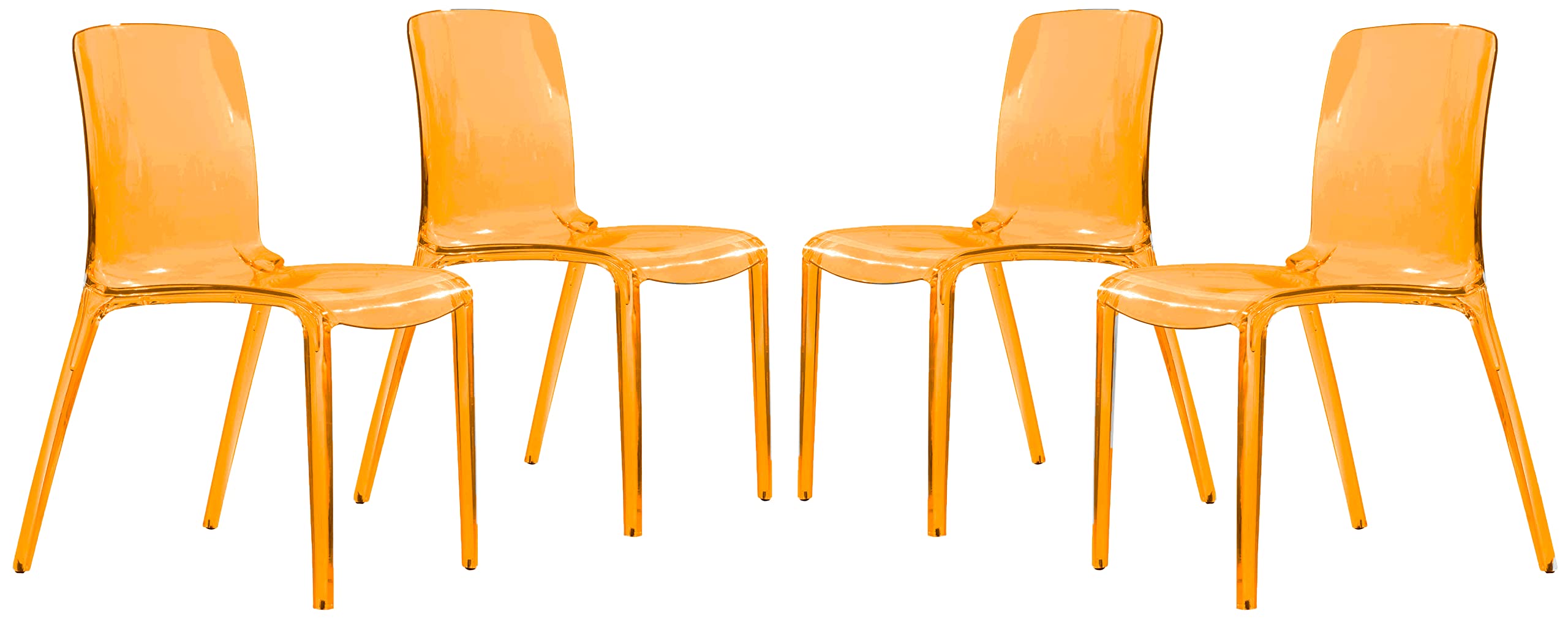 Leisuremod Murray Adler Mid-Century Modern Dining Side Chair Set Of 4 Transparent Orange