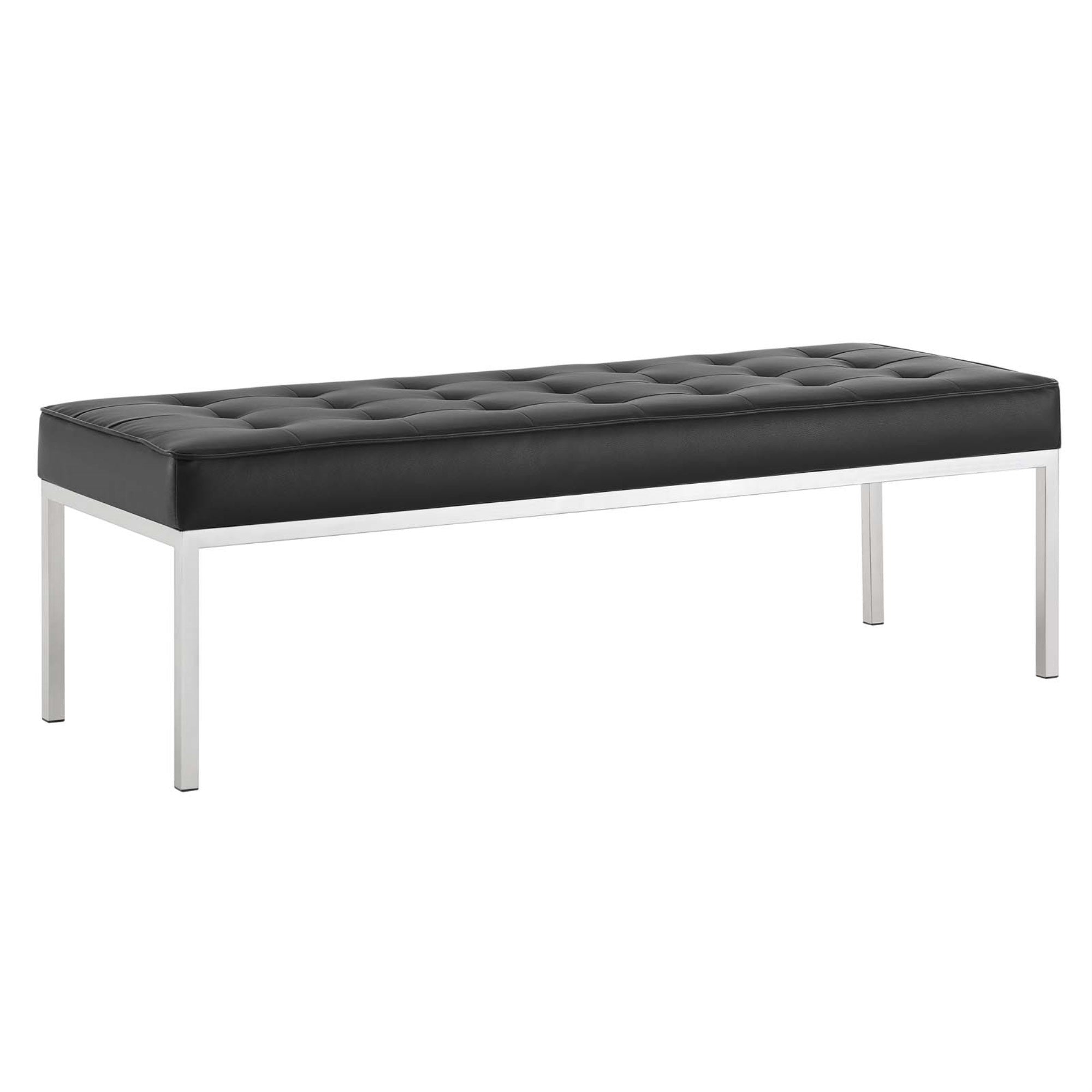 Revolutionize Your Living Room Furniture With The Iconic Loft Tufted Button Faux Leather Accent Entryway Bench. Adding Visual Depth To Your Living Room Or Lounge Space, Loft Features Soft And Durable Faux Leather Upholstery Accented In Elegant Button Tufting. This Modern Living Room Accent Bench Comes In A Captivating Linear Design With An External Tubular Stainless Steel Frame, Four Stainless Steel Silver Legs, And Non-Marking Foot Caps. Inspired By The Richness Of Mid-Century Modern Style, Loft Is The Preferred Choice Of Living Rooms And Lounge Spaces. Bench Weight Capacity: 300 Lbs.Set Includes:One - Loft Tufted Button Large Bench