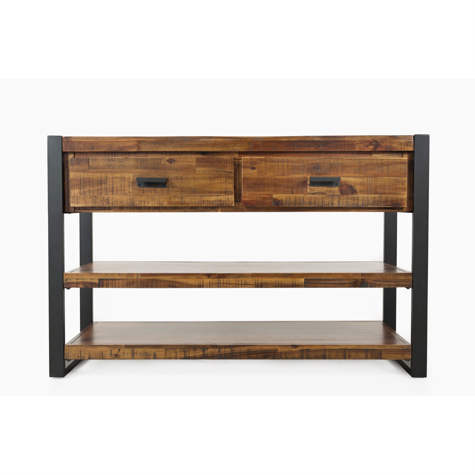 With An Incredible Modern Style Combining Rustic Distressed Acacia And The Strength Of Raw Iron, This Loftworks Console Table Has Two Built In Drawers And Two Shelves On An Industrial Metal Sled Frame That Is A Perfect Centerpiece For Your Living Room Or Foyer.