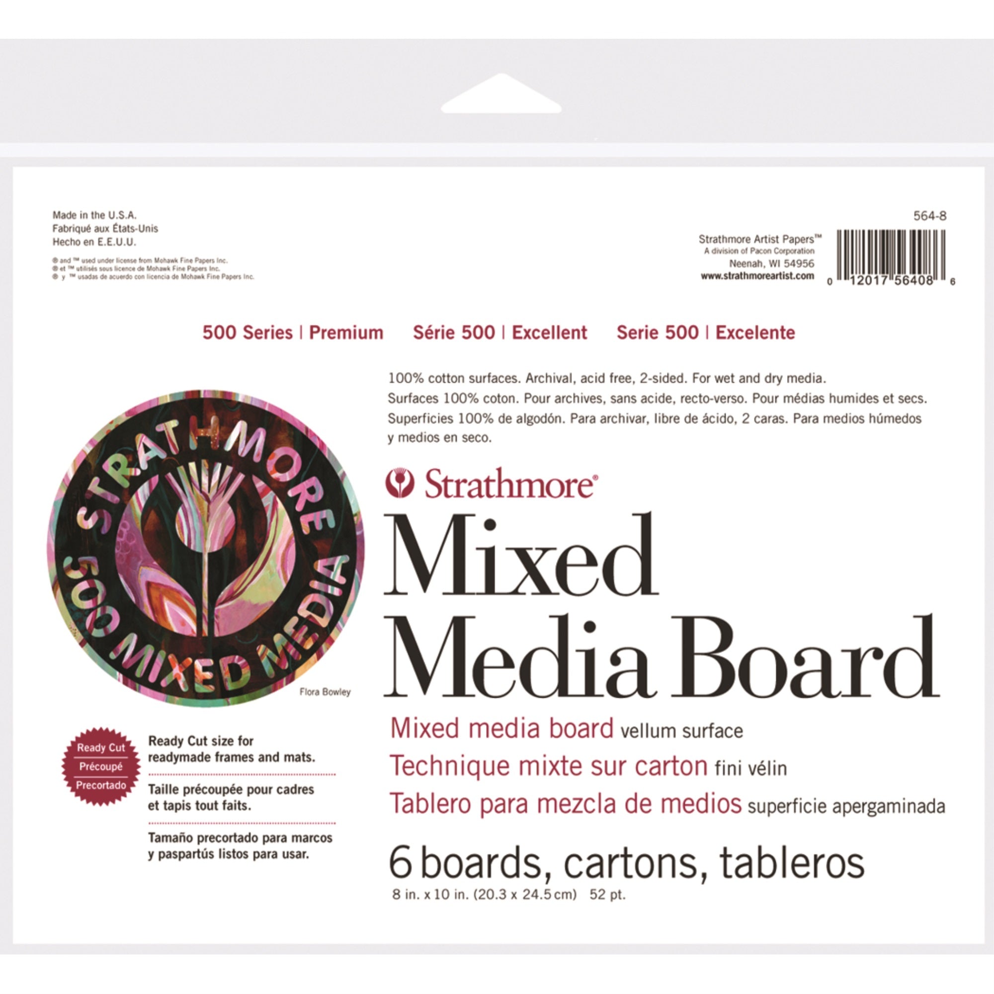 Sm564-8, Mix Med 500 Board 6/Pak 8X10. Manufactured By Strathmore. This Mixed Media Board Provides A Premium 100% Cotton Mixed Media Surface That Offers True Wet Media Performance With A Drawing Finish. It Is Constructed Of Internally-Sized, Vellum-Finish Sheets Mounted To Both Sides Of A High Quality White Board - No Sizing Or Taping Down Needed. It Is Ideal For Commercial Illustration, High-End Journals, Traditional Fine Art Painting And Drawing.
