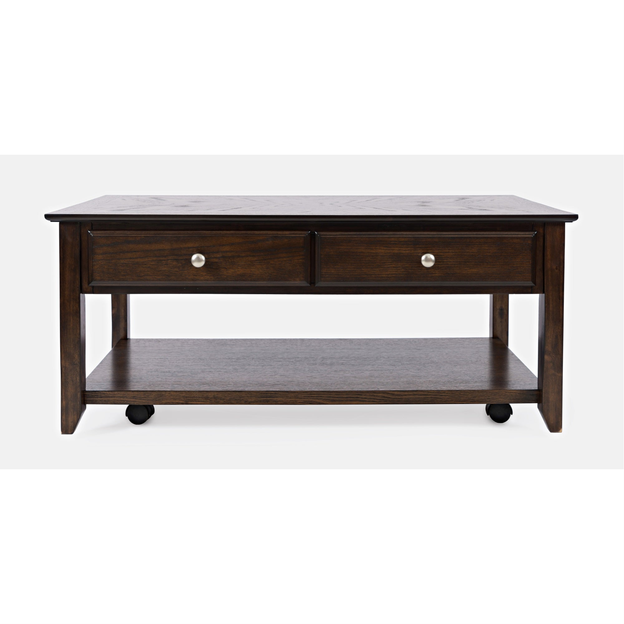 A Smooth Finish, Dovetailed Drawers And Brushed Nickel Hardware Make This Espresso Modern Four Drawer Coffee Table Everyone'S Favorite. There Is Plenty Of Storage With The Four Full-Size Drawers And One Shelf, And Optional Included Caster Wheels Make Moving A Breeze. Available In Espresso Brown And Grey-Brown Carlton Finishes.