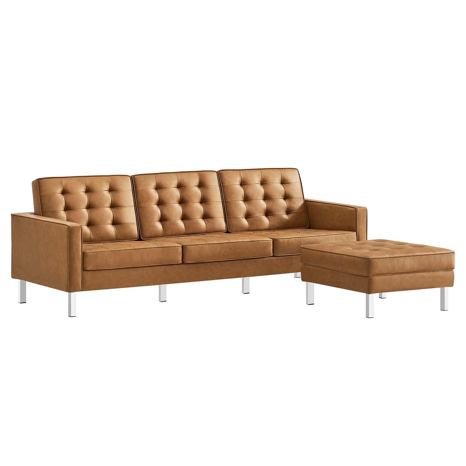 Modway Eei-6410-Slv-Tan-Set Loft Tufted Vegan Leather Sofa And Ottoman Set, Silver Tan