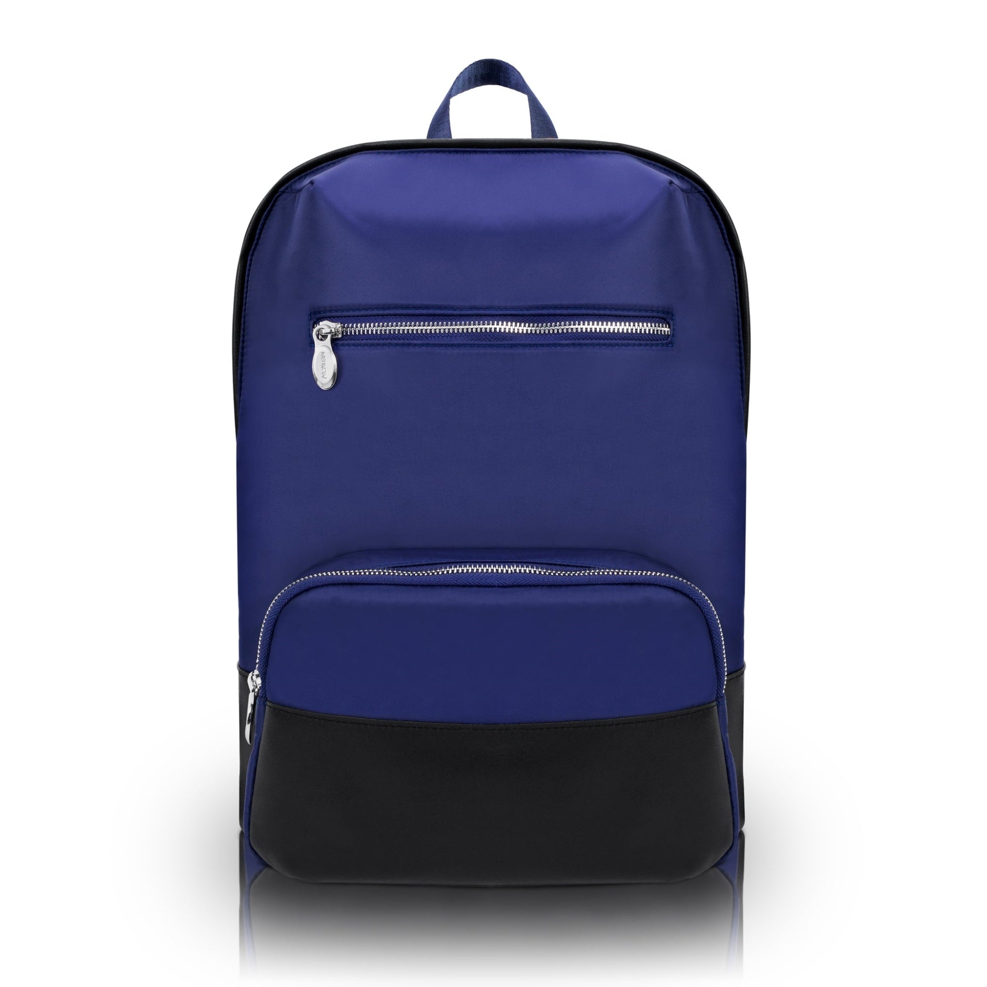 Elegant Sleek Nylon Backpack With Leather Handle And Accents. Fully-Lined Interior With Leather Accents. Exterior Zippered Compartment With Inside Pocket And Top Secure Zipper Pocket And Silver Accent Hardware And Metal Zippers. Main Compartment Features Dual Tablet Pocket With Organizer For Business Cards, Pens, And Accessories. Secure Interior Full-Length Zipper Pocket. Back Nylon Smart Strap For Easy Add On Onto Rolling Cases. Padded Adjustable Backpack Straps With Leather Trim.