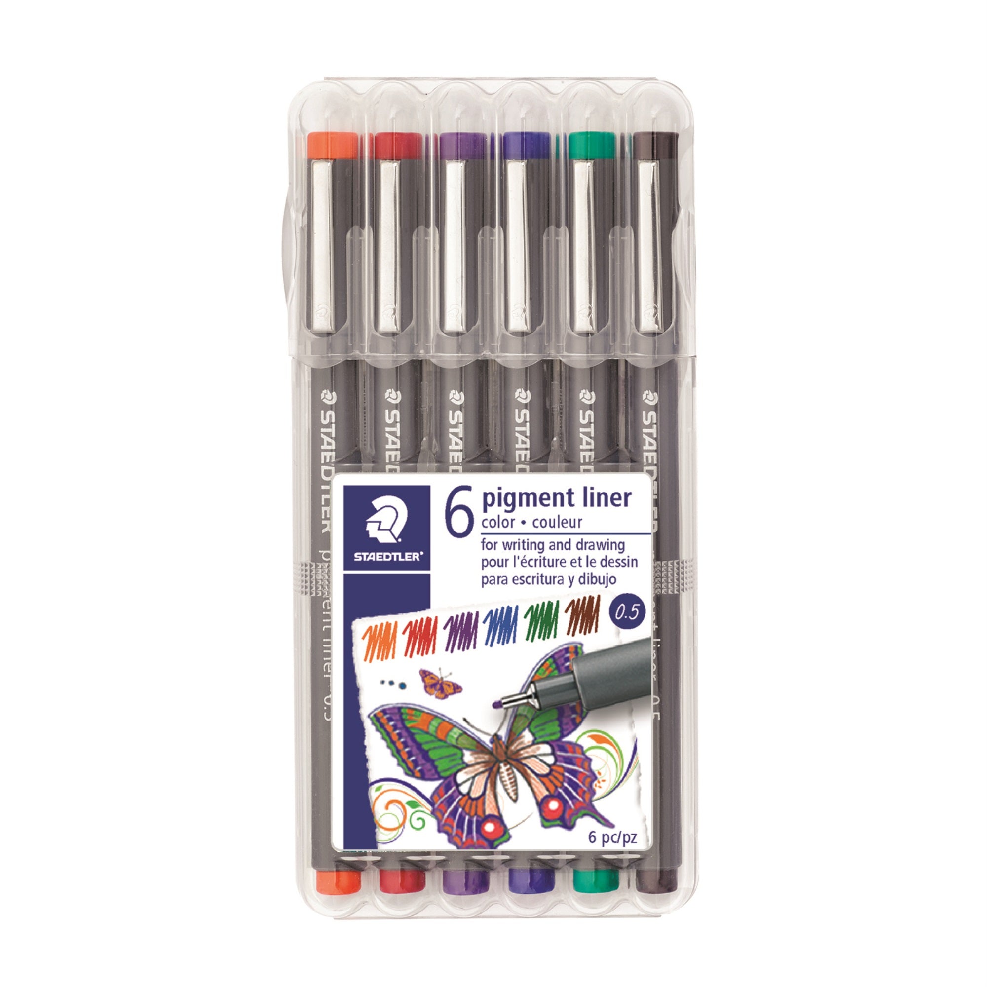 St30805Sb6A6, Pigment Liner .5Mm Basic Set/6. Manufactured By Staedtler. These Fine Line Pens Are Great For Art, Crafts, Sketching And Drawing. They Are Quick-Drying And Smear-Free, With Long Metal Tips Are Ideal For Use With Rulers And Templates.