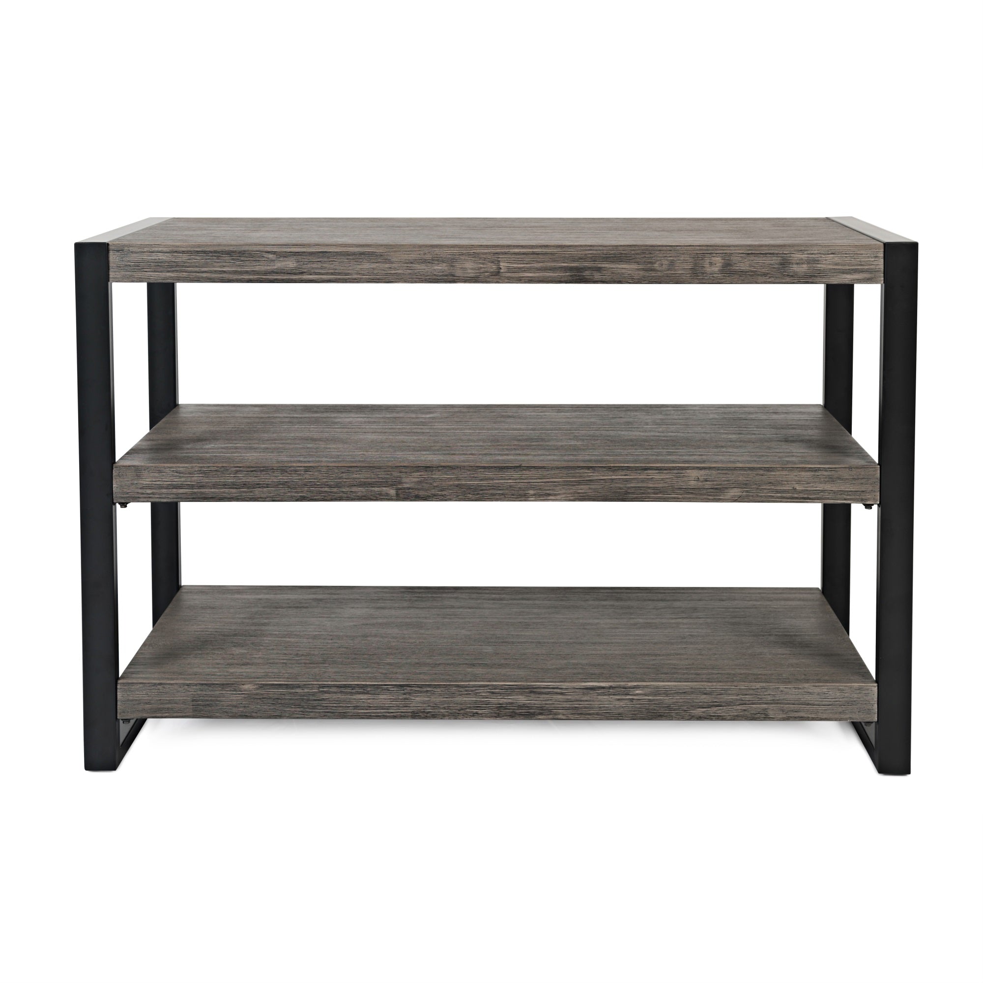 Clean, Contemporary Design Meets Industrial Style In Our Pinnacle Collection. This Media Table Combines Acacia Solids And Wire-Brushed Veneers With A Clean-Lined Metal Frame For A Sophisticated Look. The Shelves Offer Great Storage Possibilities For Your Media Needs, Books, Or Your Other Favorite Treasures.