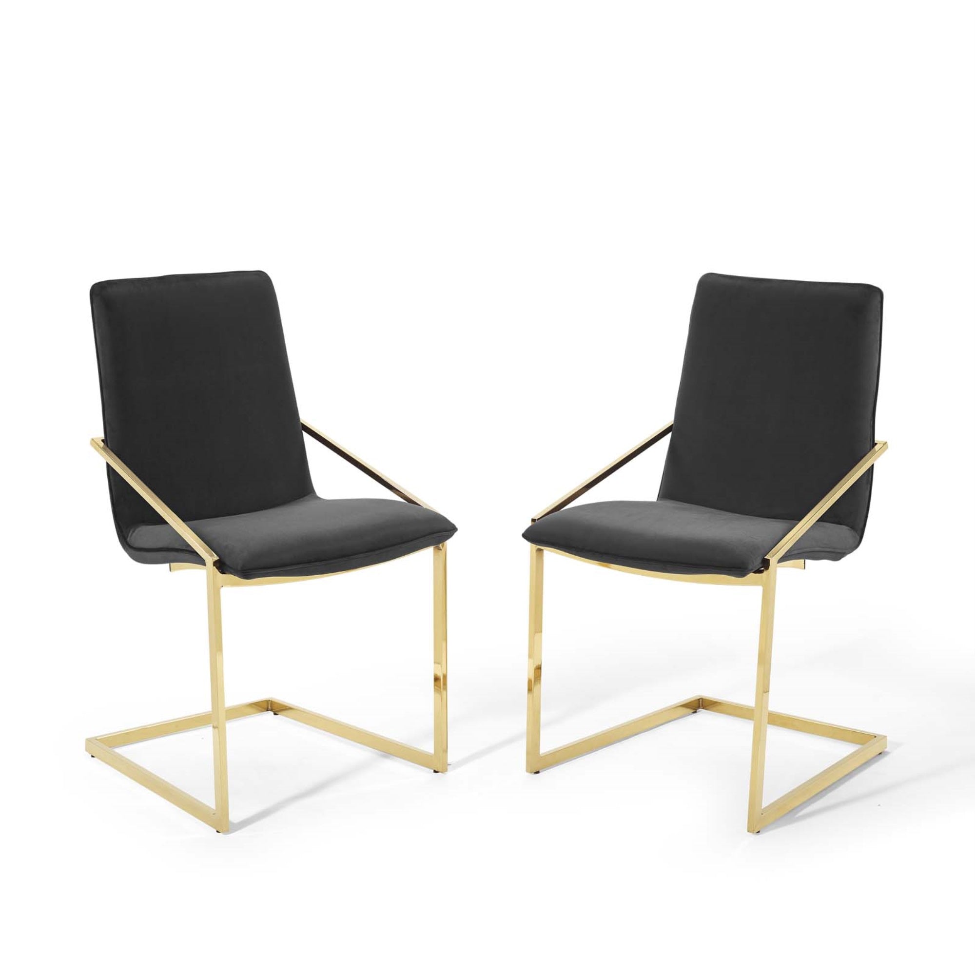 Freely Flowing Angles Form The Understated Elegance Of The Pitch Performance Velvet Upholstered Dining Armchair. The Pitch Dining Chair Has A Geometric Gold Stainless Steel Frame With Non-Marking Foot Caps, And A Foam Padded Plywood Seat. Covered In Soft And Stain-Resistant Performance Velvet Upholstery, The Pitch Accent Chair Embraces Open Space For A Notable Modern Chair That Stands Out Amongst Your Dining Room Decor. Chair Weight Capacity: 330 Lbs.Set Includes:Two - Pitch Dining Armchair