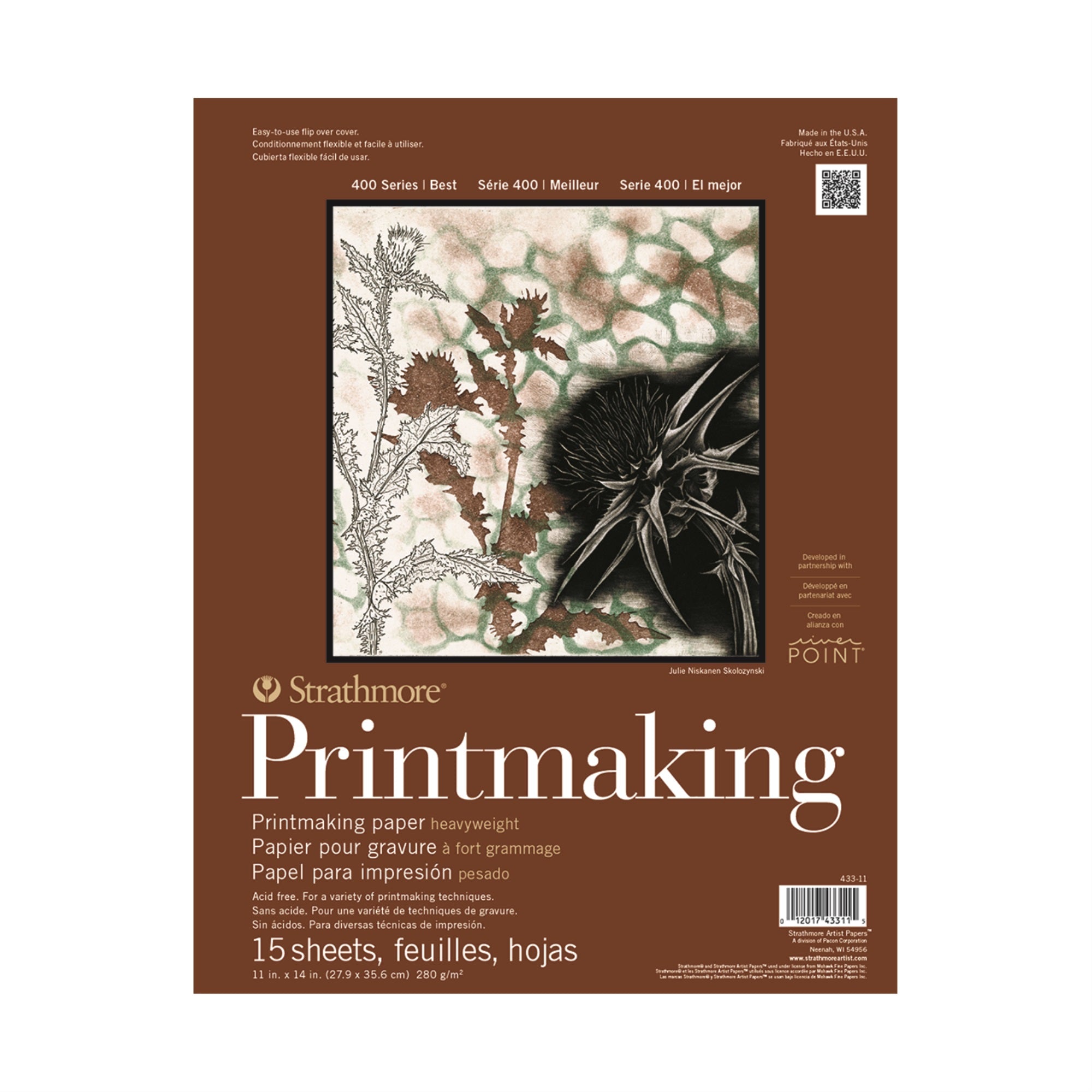 Sm433-11, Prntmkg 400 Hw 11X14 15Sh (12). Manufactured By Strathmore. These Pads Feature Paper Sheets That Are Ideally Suited For Printmaking Processes That Require A Heavier Paper Such As Lithography, Intaglio And Screen Print. The Medium-Textured Natural White Paper Is Strong And Durable, Yet Soft Enough To Absorb Many Layers Of Ink. The Pads Feature Easy-To-Use Flip-Over Covers That Allow Paper Sheets To Tear Out Cleanly. The Full Sized Sheets Are Ideal For Finished Prints.