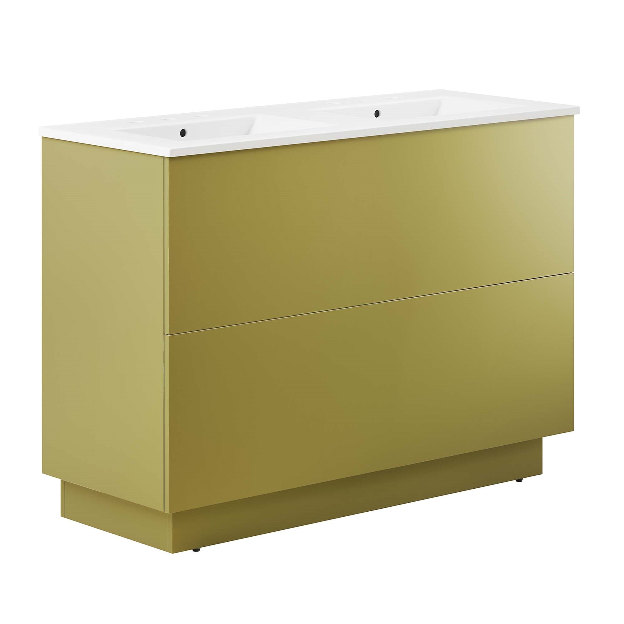 Experience A Harmonious Blend Of Luxury And Practicality With The Quantum 48 Bathroom Vanity. This Modern Bathroom Vanity Features A Sleek Ceramic Double Sink Basin With 8 Centerset Holes And Integrated Countertop, Awaiting Your Personalized Fixture Choices (Not Included). Durably Crafted From Mdf And Showcasing A Refined Gold Finish, This Vanity Cabinet Radiates Sophistication. A Spacious Full-Glide Drawer Offers Ample Storage For Bathroom Essentials, Complementing The Sleek Design. Assembly Is Required, Promising A Rewarding Setup For This Functional, Modern Vanity.Set Includes:One - Cayman 48 Double Basin Bathroom Sinkone - Quantum 48 Bathroom Vanity Cabinet