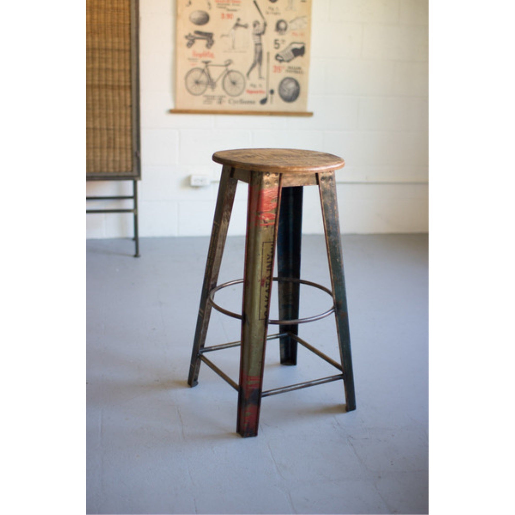 Ntm1051 Recycled Metal Bar Stool With Wooden Top, With A Colorful, Recycled Metal Base And Wooden Top, This Rustic Piece Will Fit Great In Any Home. Use Several To Create A Dynamic Bar Space Under Your Counter Or Use Just One To Make A Colorful Statement In A Corner. Deterioration May Occur If Exposed To The Elements. Indoor Or Covered Outdoor Use Only. Made Of Recycled Materials Each One May Vary In Appearance., Care Instruction : Wipe Clean With Dry Cloth
