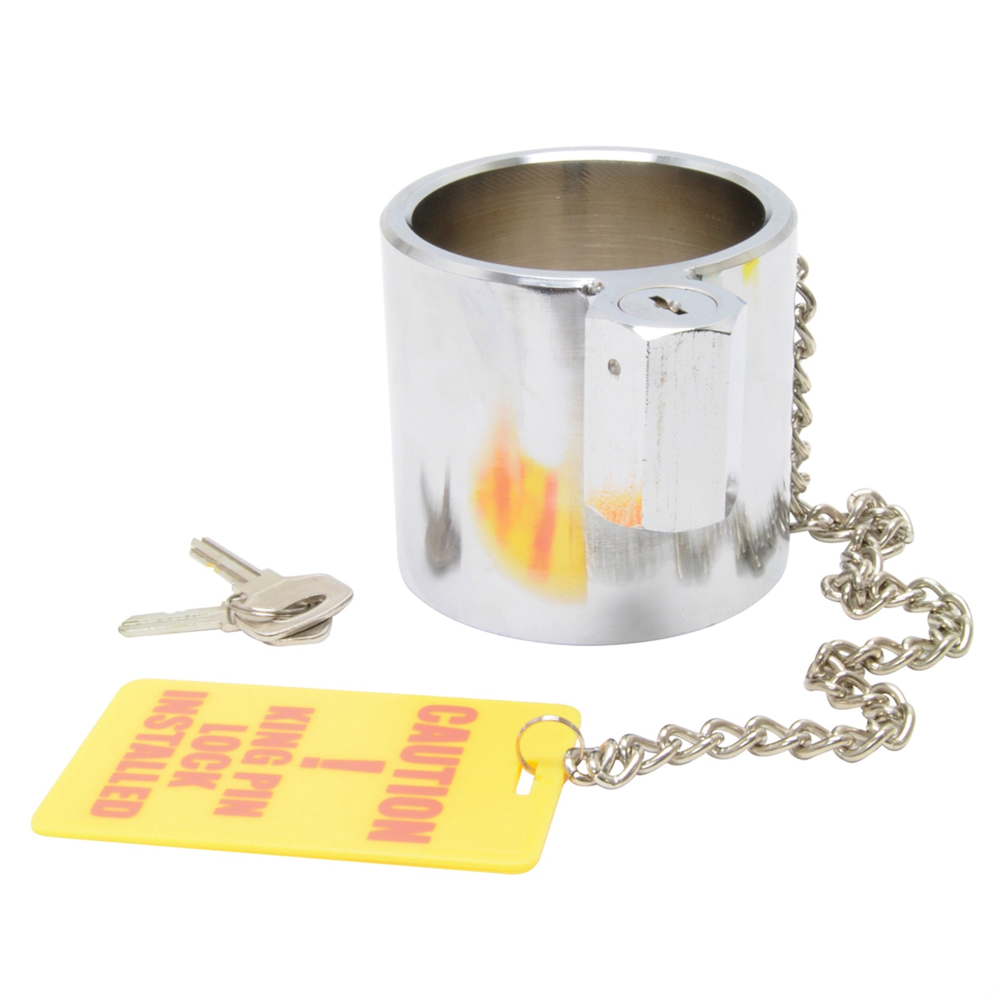 This Heavy-Duty Steel King Pin Lock Prevents Theft Of Trailers By Covering The Entire King Pin And Prohibiting Its Engagement With The Fifth Wheel. This 5Th Wheel Slide Bolt Lock Includes 2 Keys And Measures 3.25 Inches High 3.5 Inches Around. The Bright Yellow Warning Tag Hangs From A 12-Inch Chain To Deter Thieves Before They Even Get Started. Fifth Wheel Hitch Locks (Pin Locks) Are Among The Many Truck Accessories That Offer Various Benefits Including Enhanced Security And Durable Protection. The Roadpro Steel Cylinder Hitch Lock Comes With A Simple Locking System And Is Super Easy To Operate Yet Gets The Job Done. You Can Enjoy Peace Of Mind While Youre On The Road Knowing Would-Be Thieves Will Be Deterred From Stealing Or Disconnecting Your Trailer Or Rv. The Steel Lock Cannot Be Removed Without The Authorized Keys. In Addition To Being Highly Secure This Steel 5Th Wheel Lock Is Also Versatile And Can Be Used On A Wide Range Of Rvs And Trailers. Its A Trucking Accessory That Can Potentially Save You Thousands Of Dollars In The Event Of Theft Or Damage To Your Trailer. With This Lock In Place You Can Rest Easy Knowing That Your Trailer Is Safe And Secure Even When Youre Not Around To Keep An Eye On It.Durable Protection - This 5Th Wheel Lock Is Made Of Eavy-Duty Steel Construction With Chrome Plating To Withstand War And Tear And The Elementsenhanced Security - Fits Snugly And Securely Onto Your Rv Or Trailer To Cover The Entire King Pin And Provide An Additional Layer Of Protection Against Theft And Unauthorized Access
