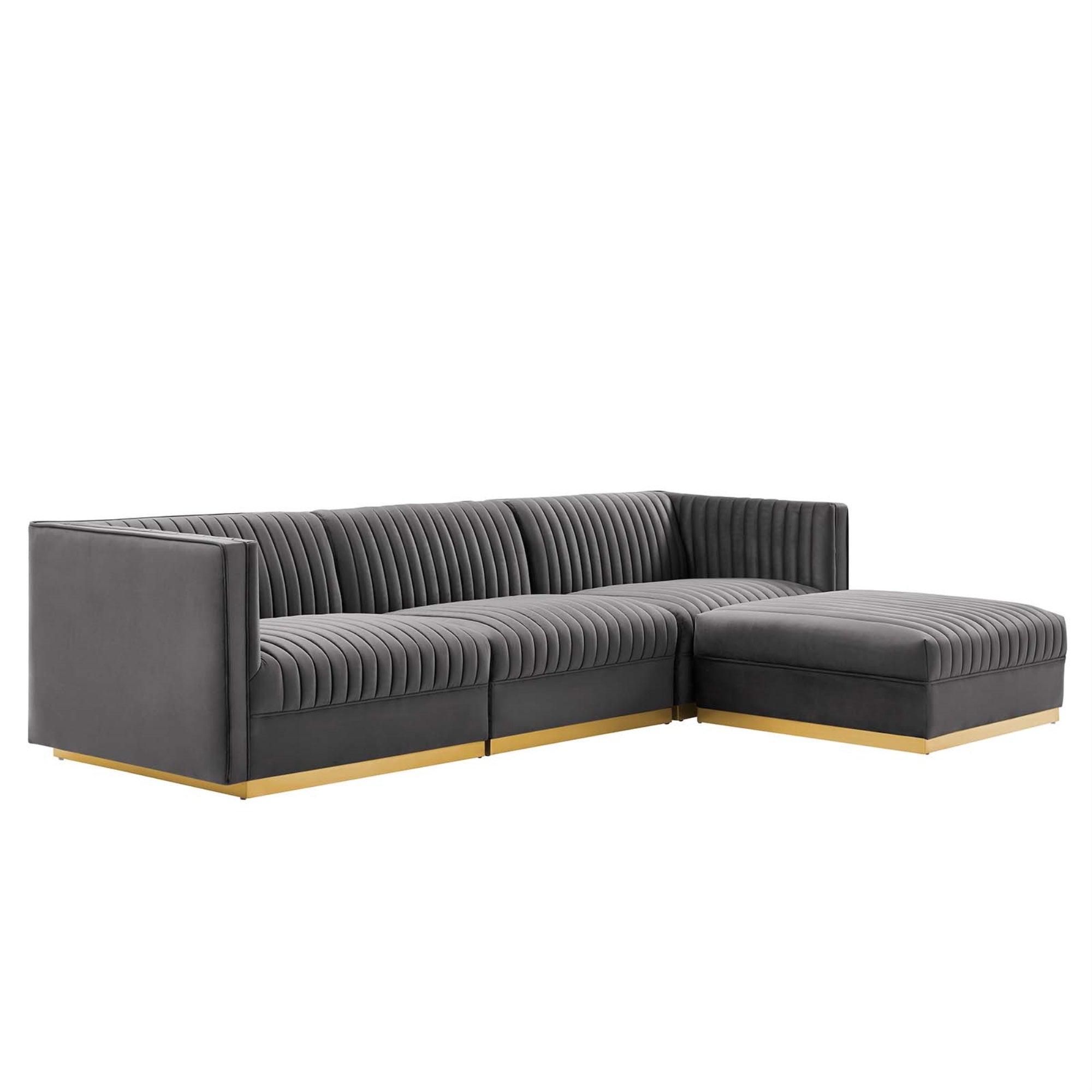 Sanguine Channel Tufted Performance Velvet 4-Piece Modular Sectional Sofa