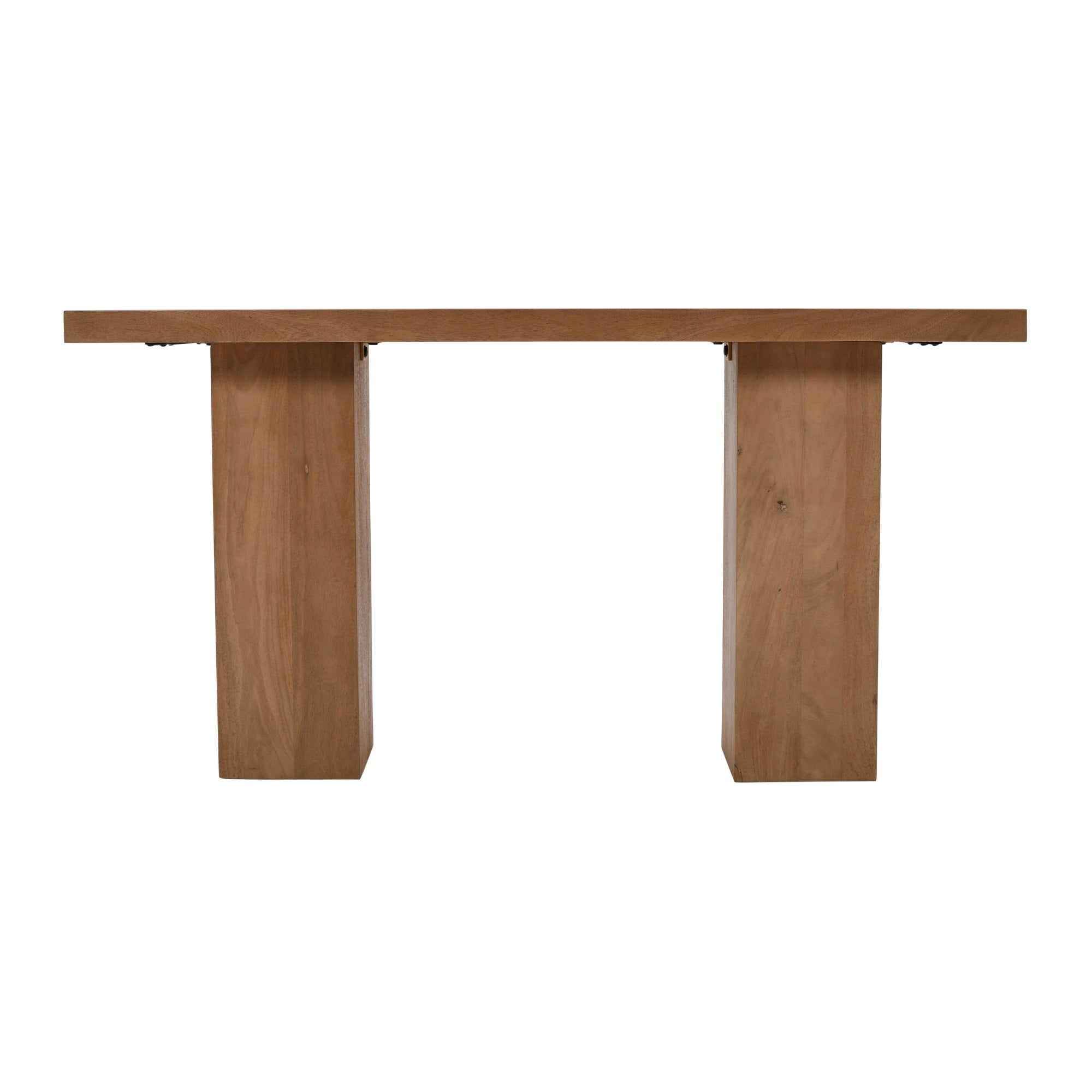 The Sequoia Modern Rustic 58' Solid Wood Double Pedestal Console Sofa Table With Butterfly Joint Inlay Brings A Stunning Blend Of Natural Craftsmanship And Modern Design To Your Living Space. Made From Solid Mango Wood, This Console Table Showcases A Distinct Hand-Carved Look That Highlights The Beauty Of The Natural Wood Grain. The Double Pedestal Base Provides Both Visual Appeal And Sturdy Support, Making It An Ideal Accent For Behind A Sofa Or In An Entryway. The Butterfly Joint Inlay Adds A Touch Of Artisan Craftsmanship, Giving The Piece A Unique And Elegant Detail. Its Rustic Charm Is Balanced By A Modern Silhouette, Making It A Versatile Addition To Both Contemporary And Rustic Interiors. With Its Ample Surface Space, This Table Is Perfect For Displaying Decor, Lighting, Or Personal Treasures. The Sequoia Console Table Not Only Offers Functionality But Also Serves As A Statement Piece That Brings Warmth And Character To Any Room.