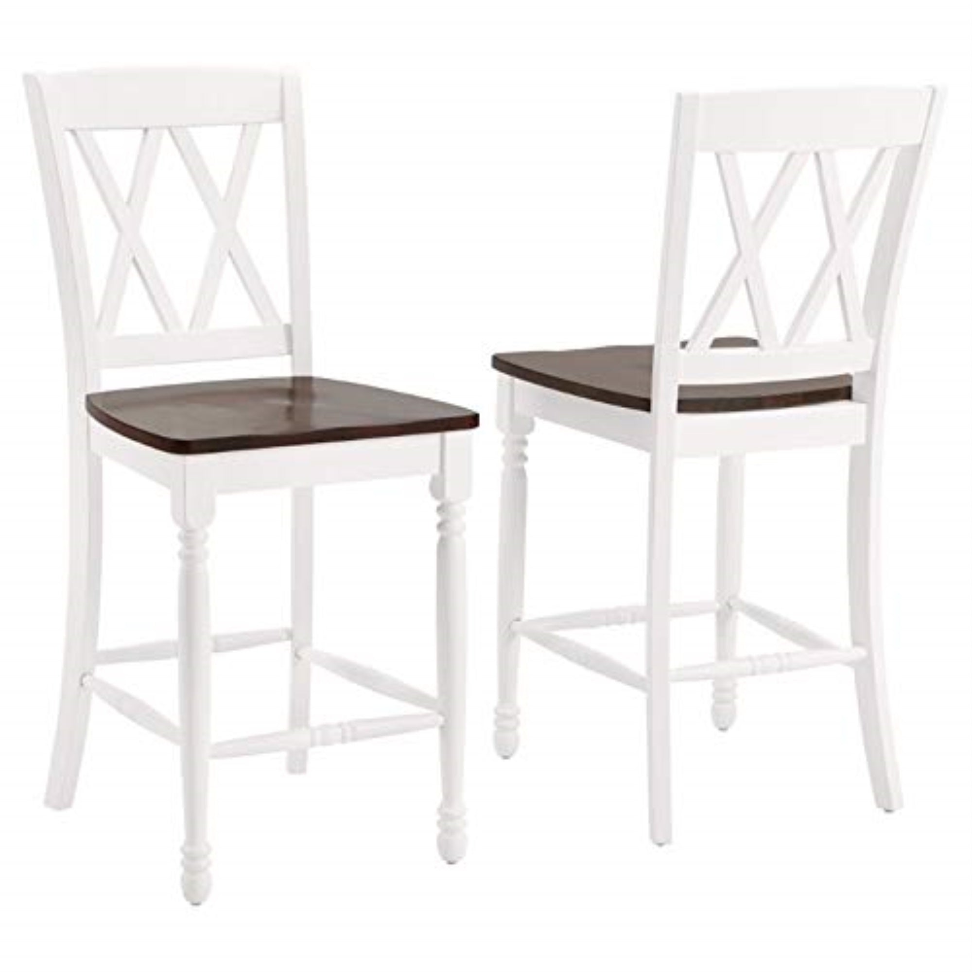 Classic Seating Goes To The Next Level With The Shelby 2-Piece Counter Stool Set. Beautifully Crafted With A Molded Wood Seat And Double X Design On The Back, These Counter Stools Are A Perfect Addition To A Breakfast Bar Or Kitchen Island. With Traditional Turned Front Legs, These Counter Height Bar Stools Add Charm And Function To Your Kitchen Or Dining Space.