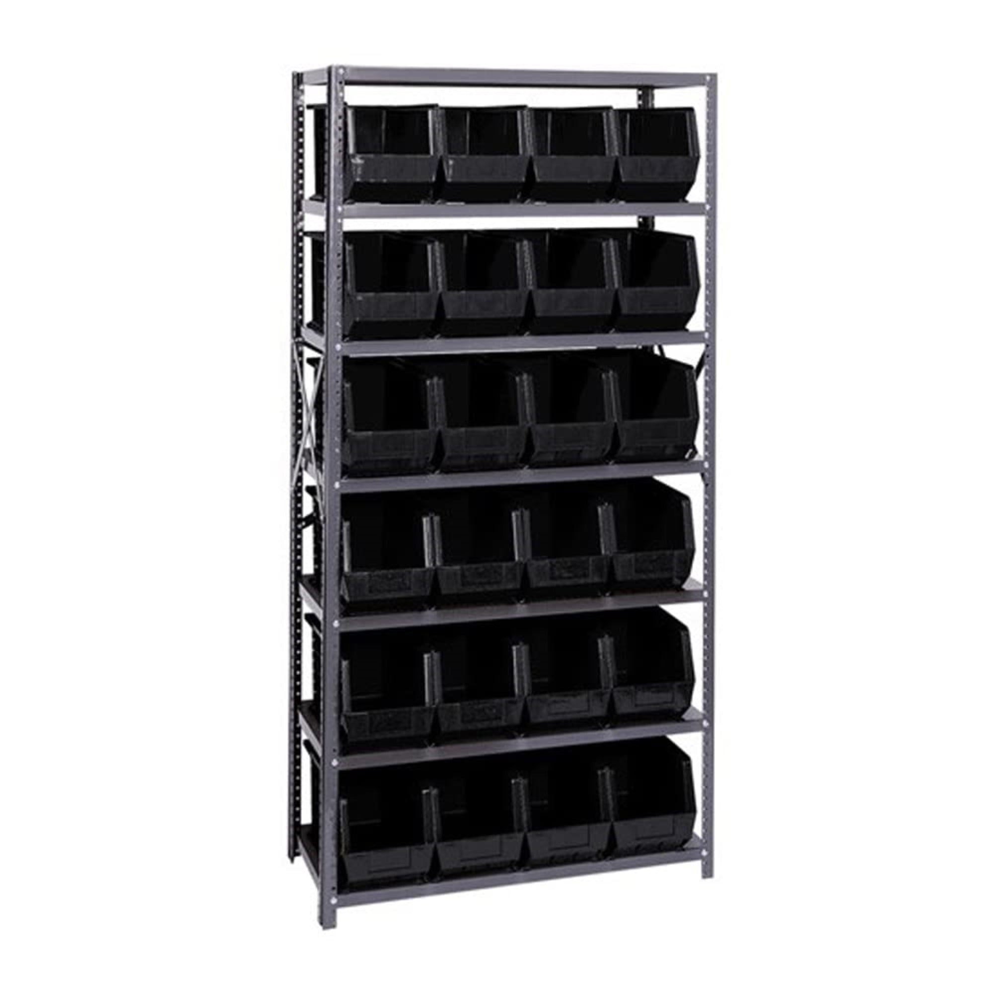 Shelving Unit, 18D X 36L X 75H, Heavy Duty, 400 Lb. Load Capacity Per Shelf, Includes: (7) Shelves And (24) Qus265 Blue Bins, Up