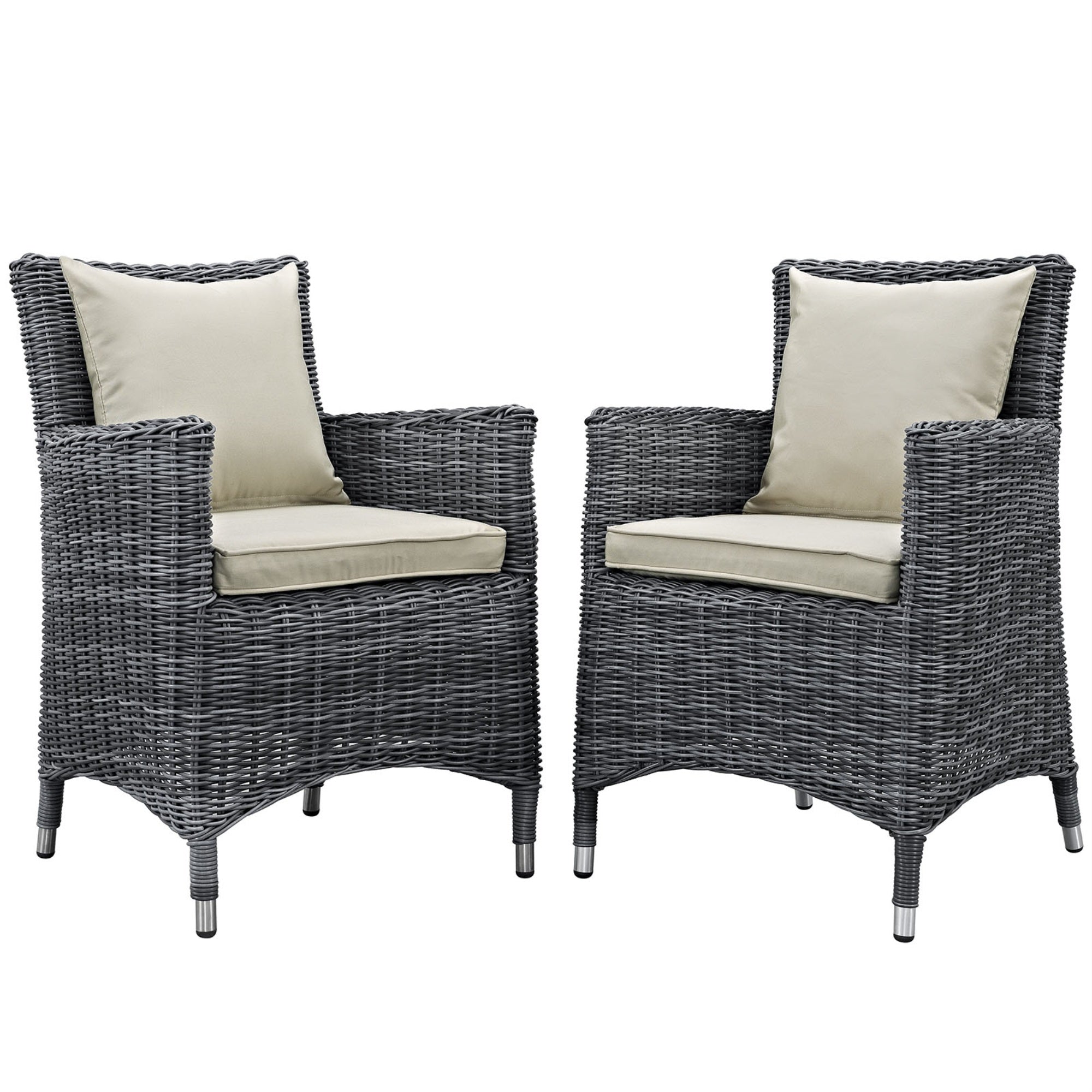 Indulge In The Great Outdoors With Utmost Comfort And Top-Notch Quality. The Summon Outdoor Patio Dining Arm Chair Guarantees A Luxurious Experience With Its Stunning Two-Tone Synthetic Rattan Weave, Cozy All-Weather Cushions Made With The Renowned Sunbrella Fabric, And A Durable Powder-Coated Aluminum Frame That Offers Uv Protection. With Its Sleek Design, Rounded Arms, And Contemporary Appeal, This Arm Chair Is A Perfect Addition To The Avant-Garde Outdoor Sectional Series, Ideal For Elevating Any Patio, Backyard, Or Poolside Gathering. This Set Includes Two Summon Dining Armchairs.