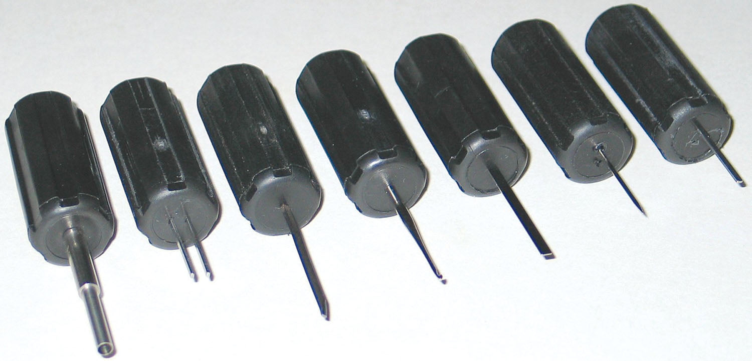 Tools Quickly And Easily Disassemble Automotive Connectors To Remove Faulty Terminals. Eliminates Connector Damage And Is Easier And Faster Than Prying Connectors Apart With A Screwdriver Includes Seven Terminal Tools To Fit The Most Common Automotive Connectors Each Tool Has A Specially Designed Tip To Depress The Connector Locking Tab That Secures The Terminal