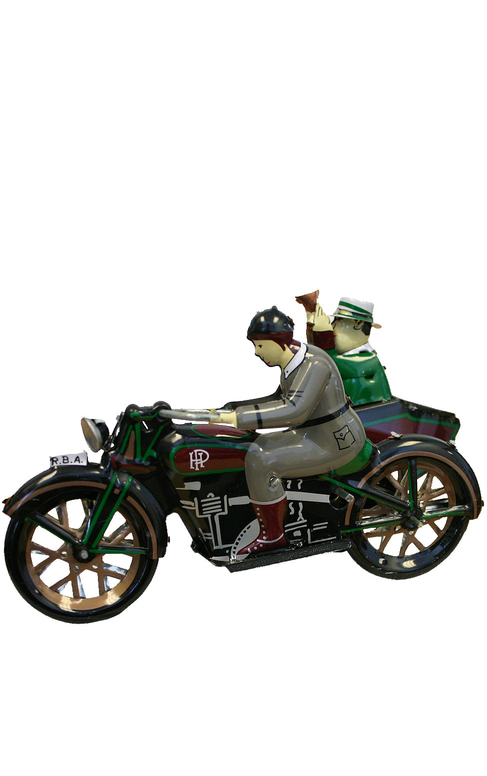 Ms804 - Collectible Tin Toy - Motorcycle With Passenger In Sidecar - 3.75H X 3.5W X 7D