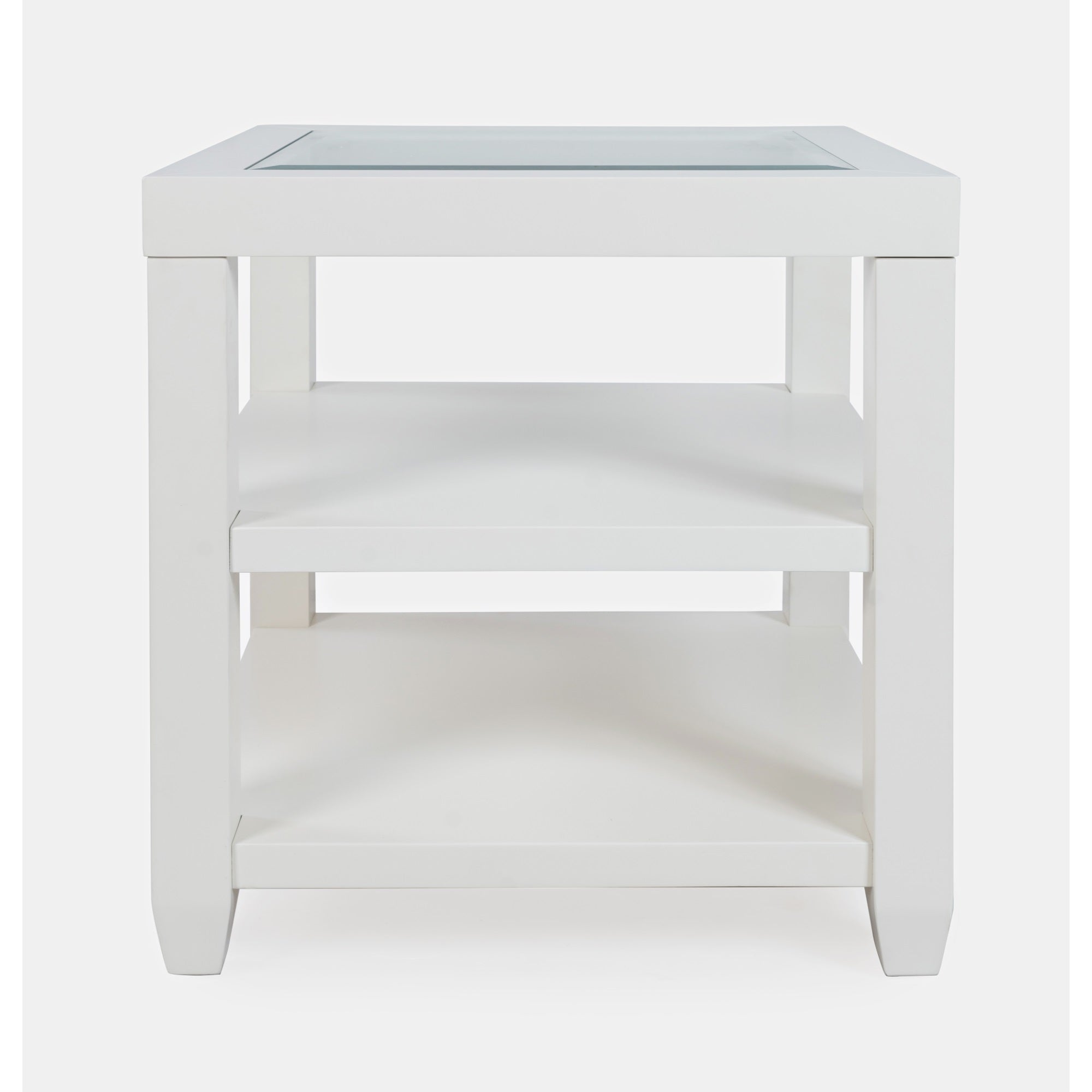 Contemporary Style With A Solid Tempered Glass Inlay, This Urban Icon End Table Features Three Unique Color Options And Modern Beveled Edges. Two Full-Length Storage Shelves Are Included, And The Modern Style Matches A Wide Range Of Home Decor. Available In White, Black, And Merlot Finishes.