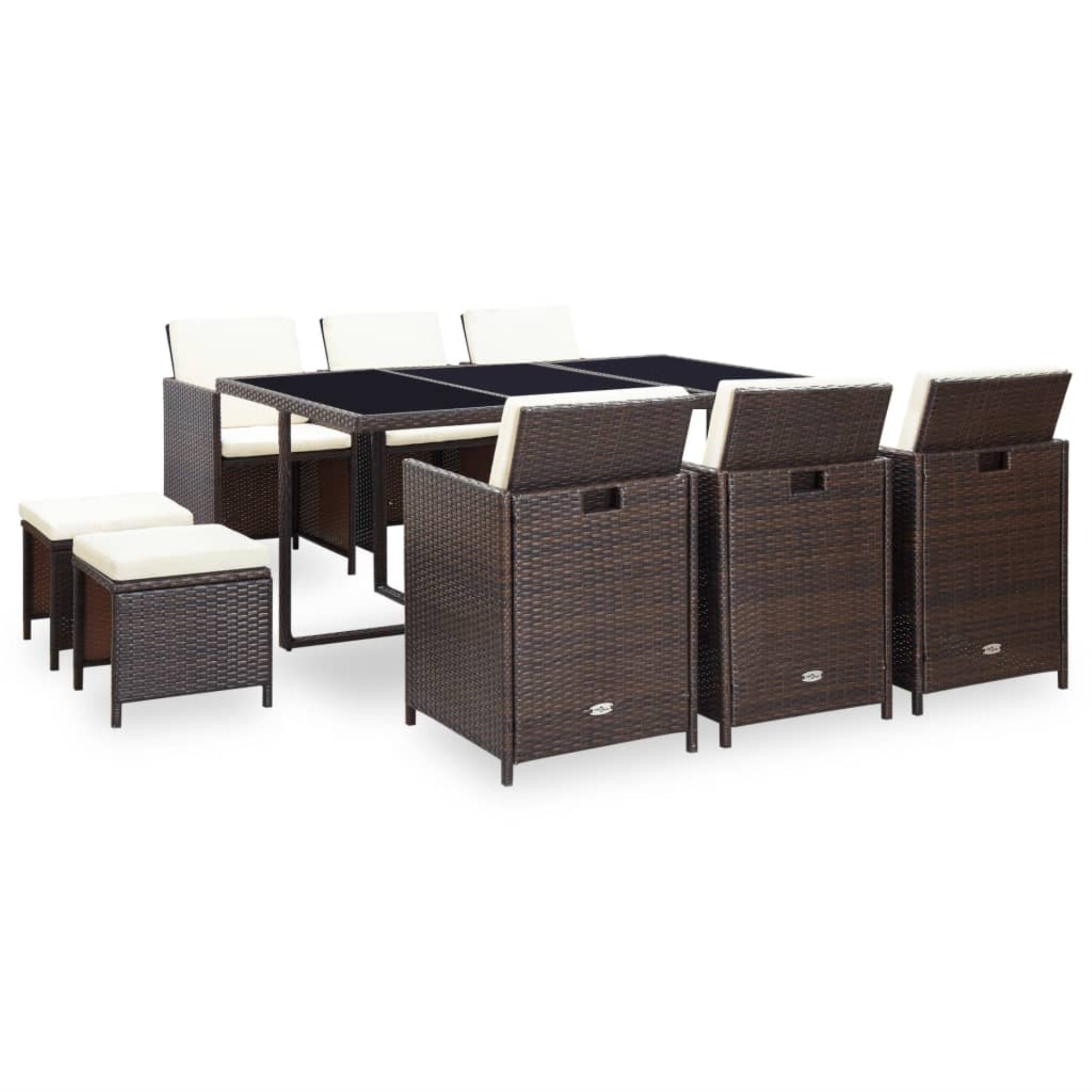 Vidaxl 11 Piece Outdoor Dining Set With Cushions Poly Rattan Brown