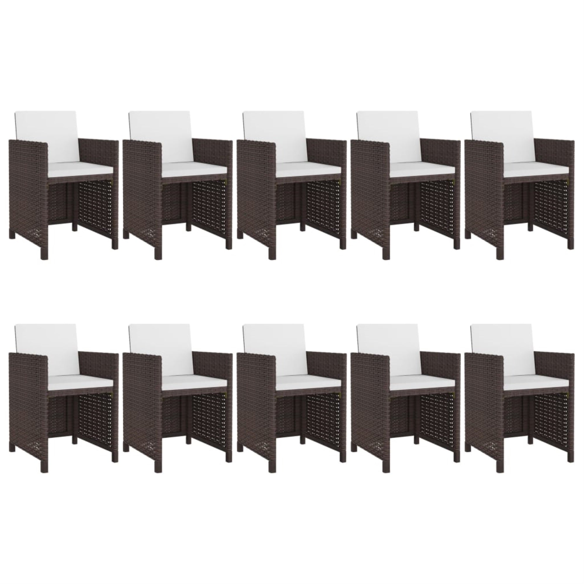 Vidaxl 11 Piece Patio Dining Set With Cushions Poly Rattan Brown