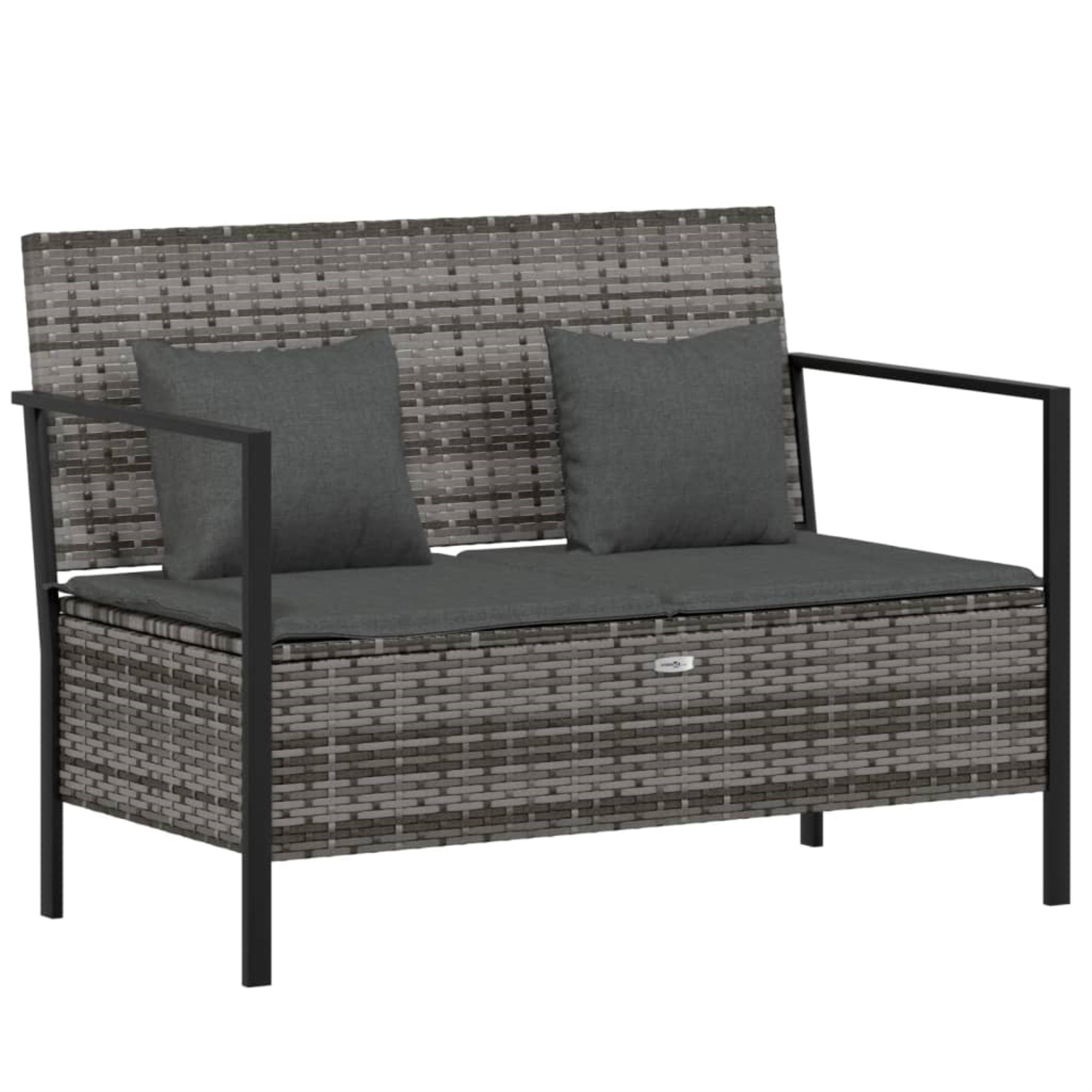 Vidaxl 2-Seater Patio Bench With Cushions Gray Poly Rattan