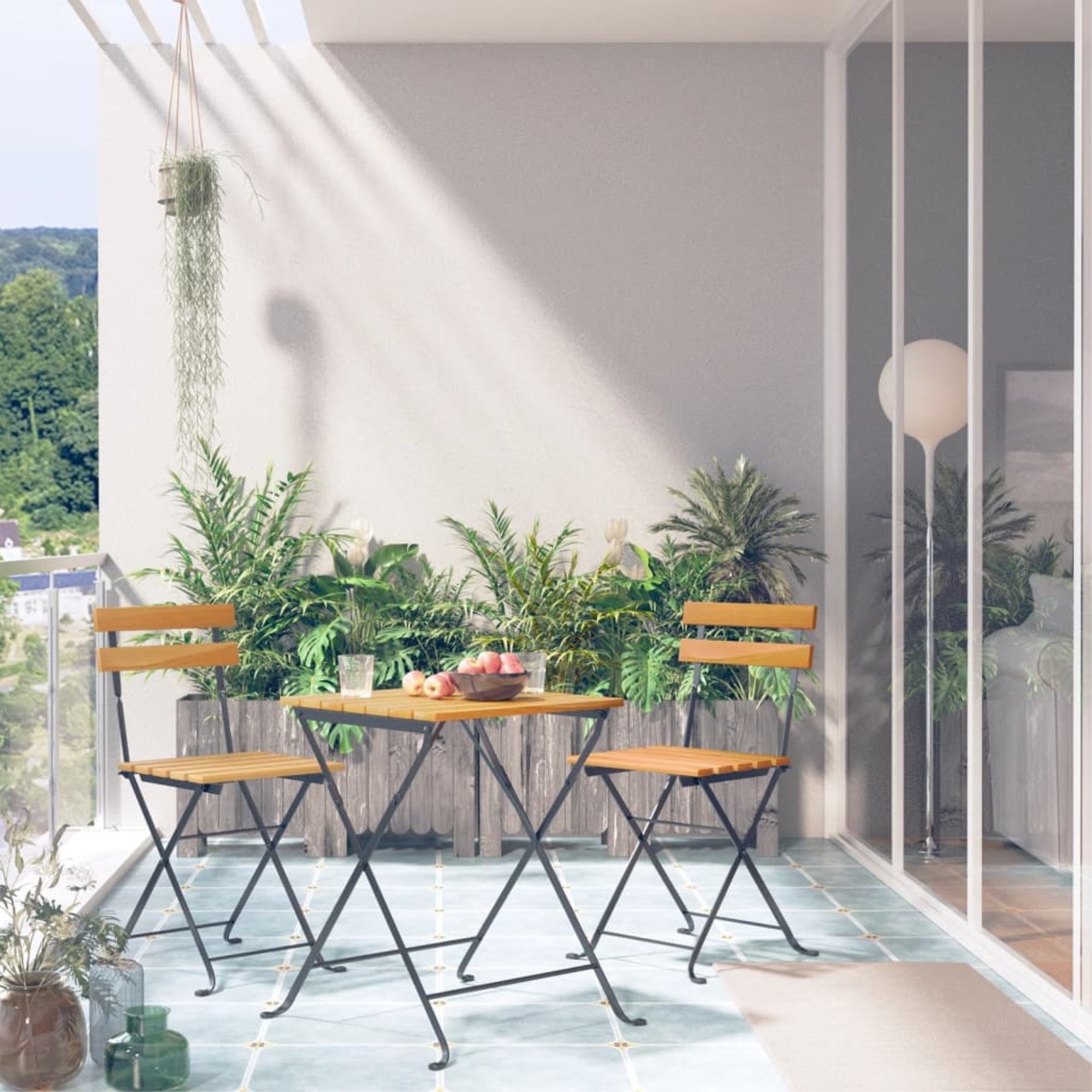 This Classic Wooden Bistro Set Consists Of 1 Table And 2 Chairs And Will Make A Great Addition To Your Indoor Or Outdoor Living Space. The Table And Chairs Are Made Of Solid Acacia Wood And Sturdy Steel, Making The Set Weather Resistant And Highly Durable. The Table And Chairs Can Be Folded To Save Space When Not In Use. The Whole Set Is An Ideal Choice For Intimate Al Fresco Dining In The Garden Or On The Patio. Note: In Order To Extend The Life Of Your Outdoor Furniture, We Recommend You To Clean It Regularly And Do Not Leave It Outdoors Without Protection Unnecessarily.Clean: Use A Mild Soap Solutionstoring: If Possible, Store In A Cool, Dry Place Indoors. If The Product Is Stored Outdoors, Protect It With A Waterproof Cover. Wipe And Dry The Excess Water Or Snow From Flat Surfaces After A Rain Or Snowfall. Allow Sufficient Air Circulation To Avoid Moisture-Related Damage.