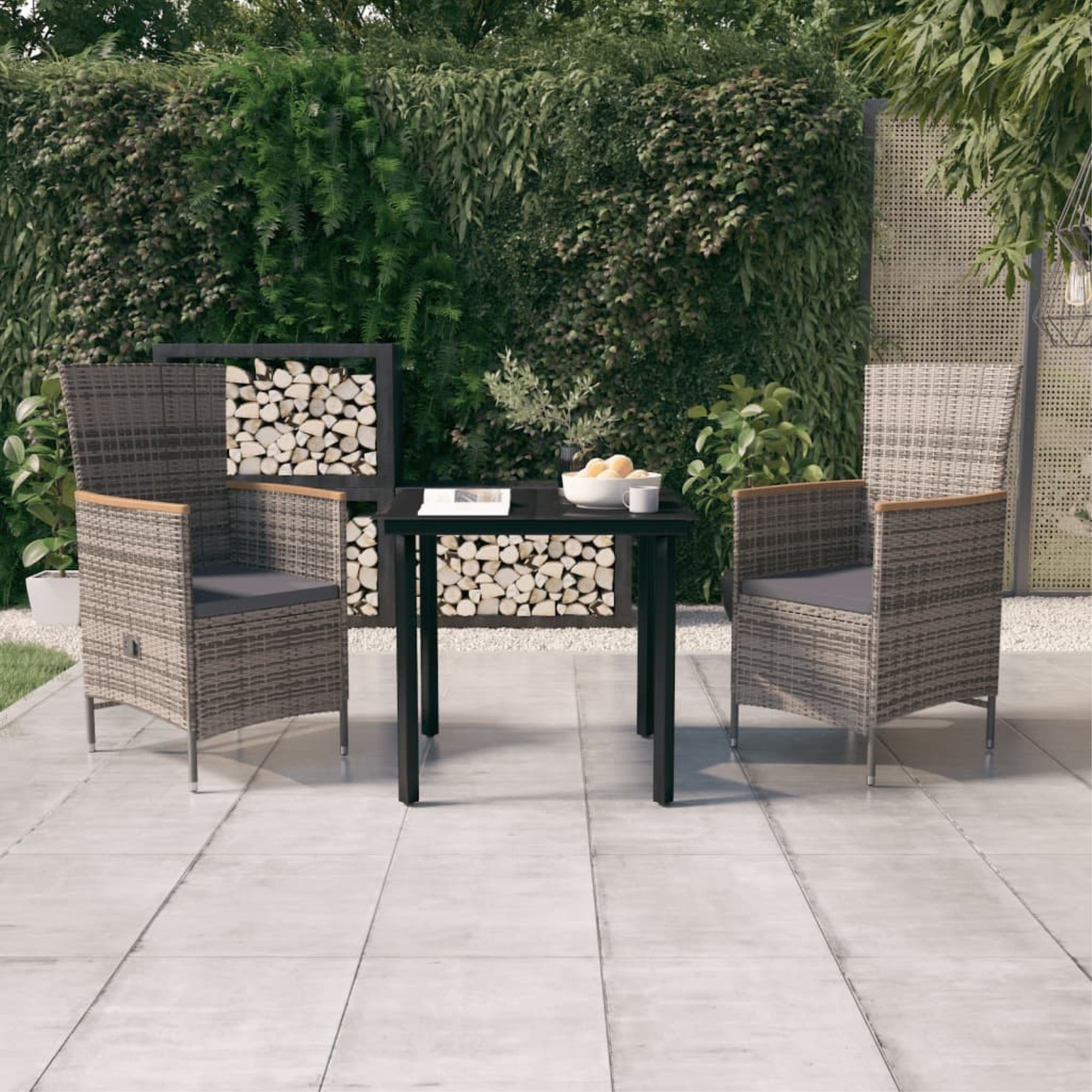 Vidaxl 3 Piece Patio Dining Set With Cushions Gray