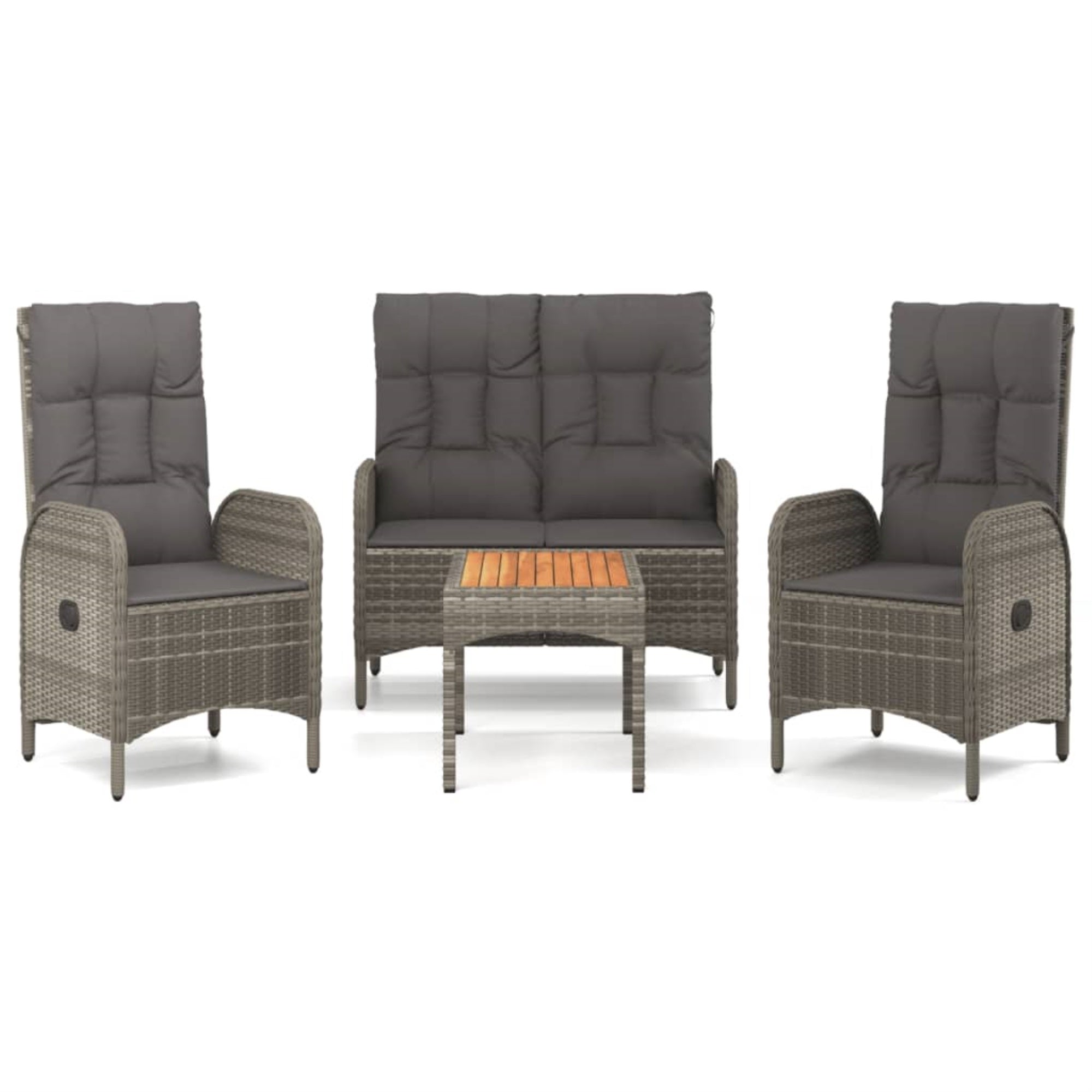 Vidaxl 4 Piece Patio Dining Set With Cushions Gray Poly Rattan