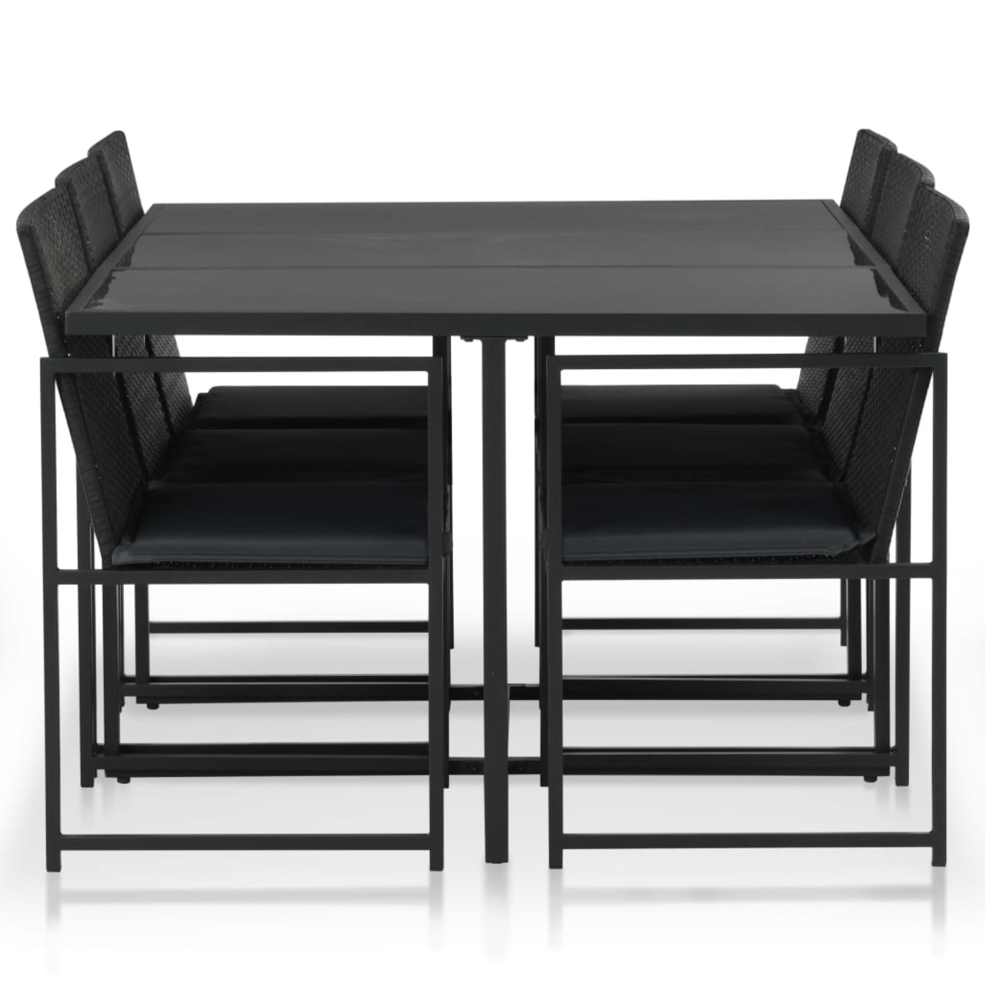 Vidaxl 7 Piece Outdoor Dining Set With Cushions Poly Rattan Black - 44444, This Garden Furniture Set Will Be The Eye-Catcher In Your Garden, On Your Balcony Or Patio. Thanks To The Water-Resistant Pe Rattan, The Seat Area And Backrest Of Chairs Are Easy To Clean And Durable. The Powder-Coated Steel Frames Also Make The Set Of Furniture Strong And Stable. It Comes With A Stylish Table To Match Our Elegant Chairs. This Garden Set Is Easy To Assemble. Delivery Includes 1 Table, 6 Chairs And 6 Seat Cushions. Note: We Recommend Covering The Set During Rain, Snow And Frost For Its Best Service To Last.