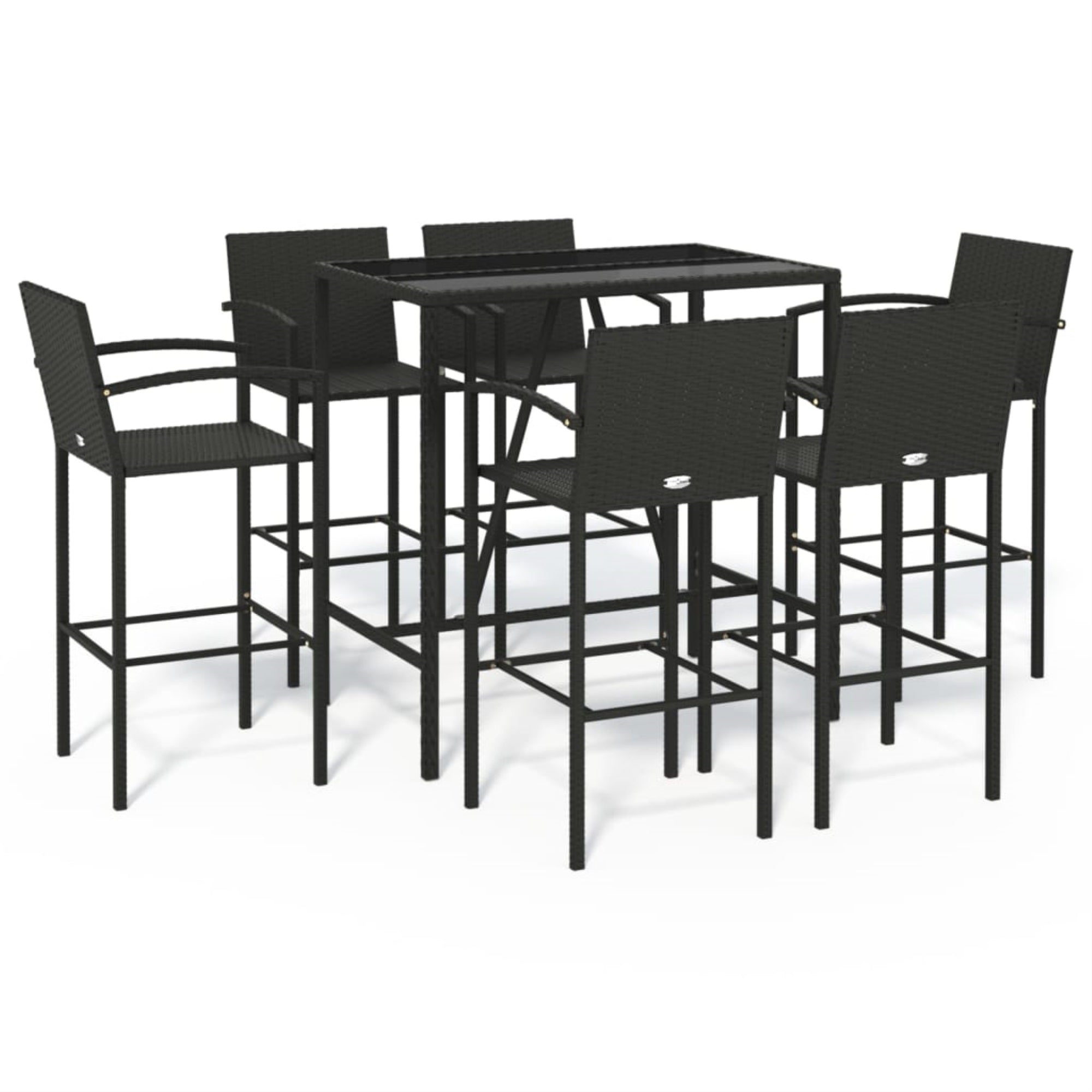 Vidaxl 7 Piece Patio Bar Set Black Poly Rattan