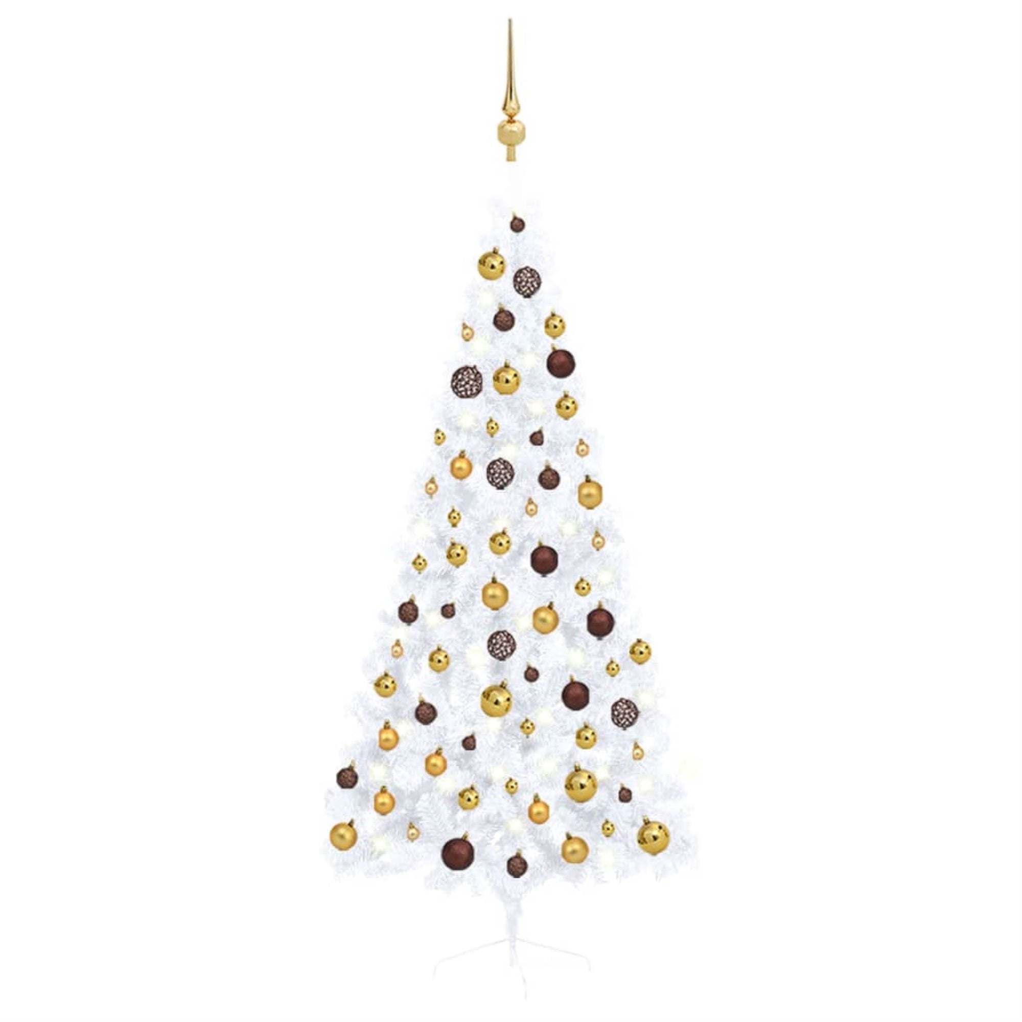 Vidaxl Artificial Half Christmas Tree With Leds&Ball Set White 70.8'