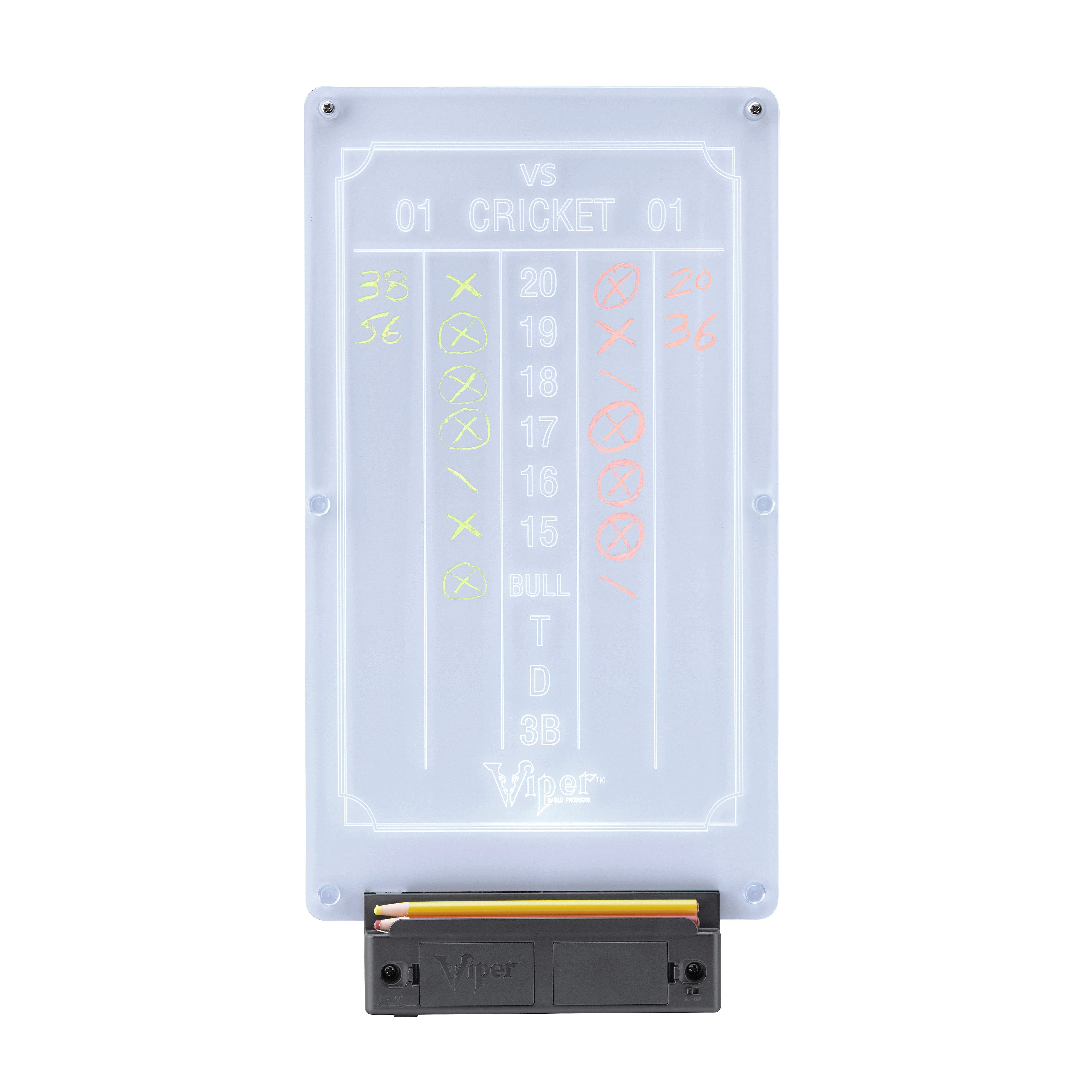 Light Up Your Opponents When They See Your Scores On The Viper Illumiscore Illuminated Dart Scoreboard. Attain The Best Visibility During Your Games, So You Can See What Your Next Shot Needs To Be. The Specially Designed Pencils (Included) Will Glow Brightly When The Board Is Lit. No More Guessing And Scratch Paper! Clean Up Is A Breeze, As The Board Wipes Clean After Every Game. The Scoreboard Is Powered By 4 Aa Batteries Or An Optional Adapter For Two Convenient Power Options. Once Youve Mastered The Art Of Standard Cricket And 01 Games, The Game Manual Can Put A New Spin On To Old Favorites.