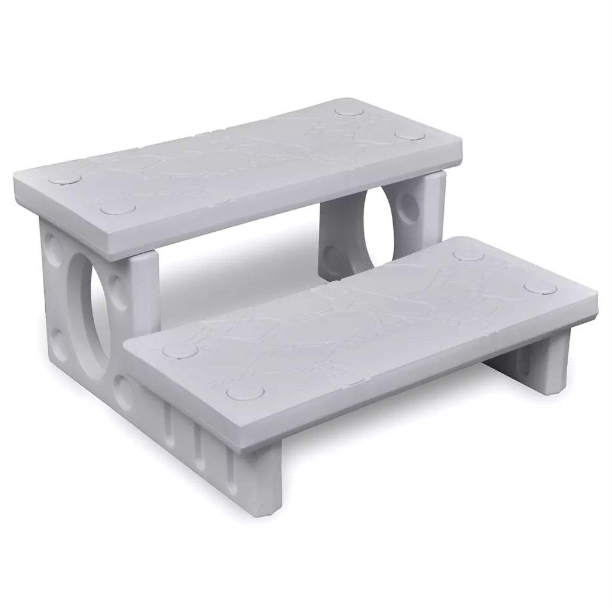 White Spa Steps - 90716, These Sturdy, High-Quality Spa Steps With A Non-Skid Surface Are A Safe And Convenient Way To Access To Your Hot Tub. The Steps Have 2 Reversible Treads, Each With A Straight And A Curved Edge, Which Make Them Suitable For Both Flat-Walled And Circular Hot Tubs. Made Of High-Quality Plastic, These Steps Are Lightweight Yet Strong.
