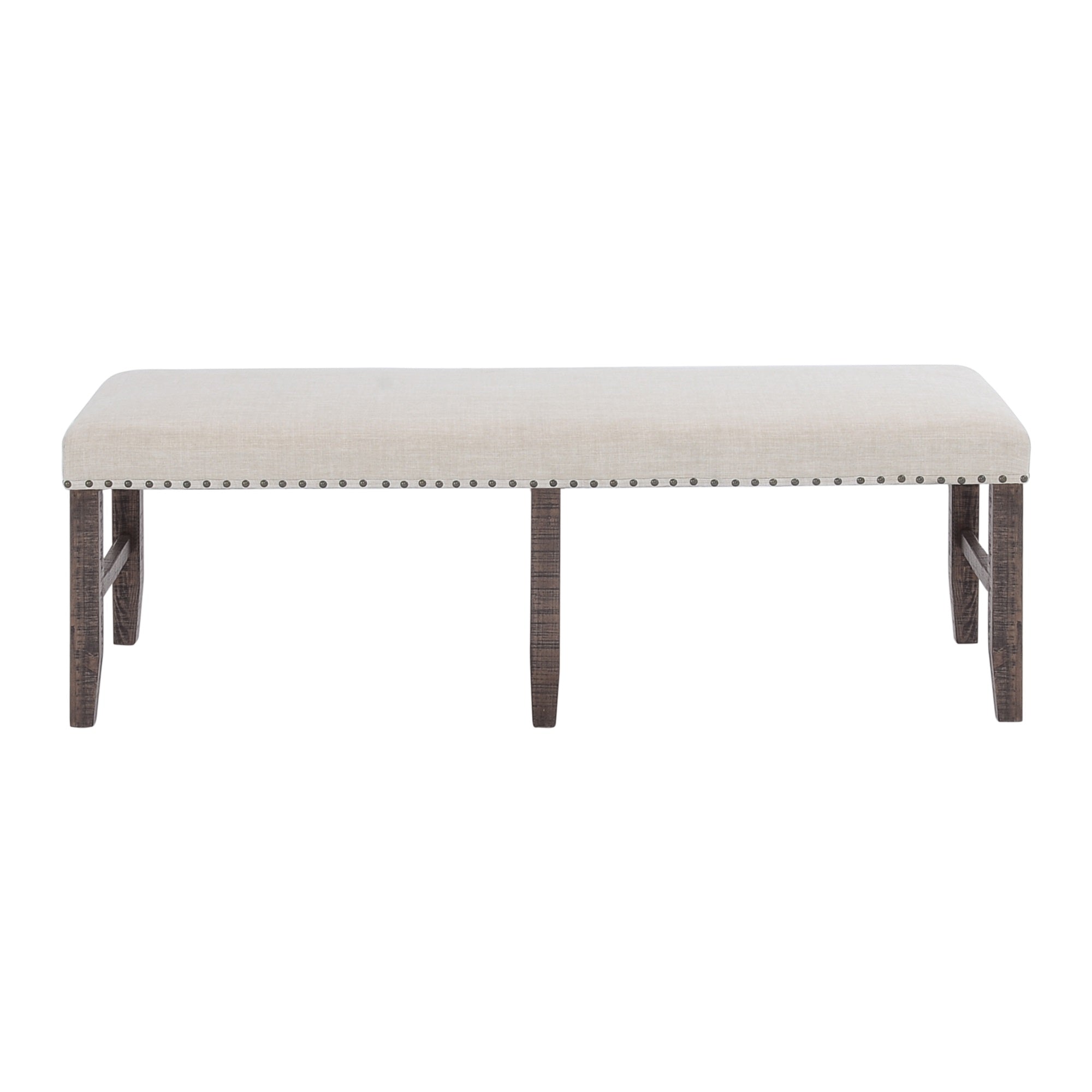The Willow Creek Collection Blends The Beauty Of Solid Pine With A Rich Distressed Finish For A Rustic Style That Is Right At Home. This Upholstered Bench Pairs Perfectly With The Matching Dining Table, And The Nailhead Trim On Cream Fabric Add A Wonderful Sophisticated Accent. Measuring 56' Wide, This Bench Can Be Used For Extra Seating Around The House Or Stored Under The Dining Table.