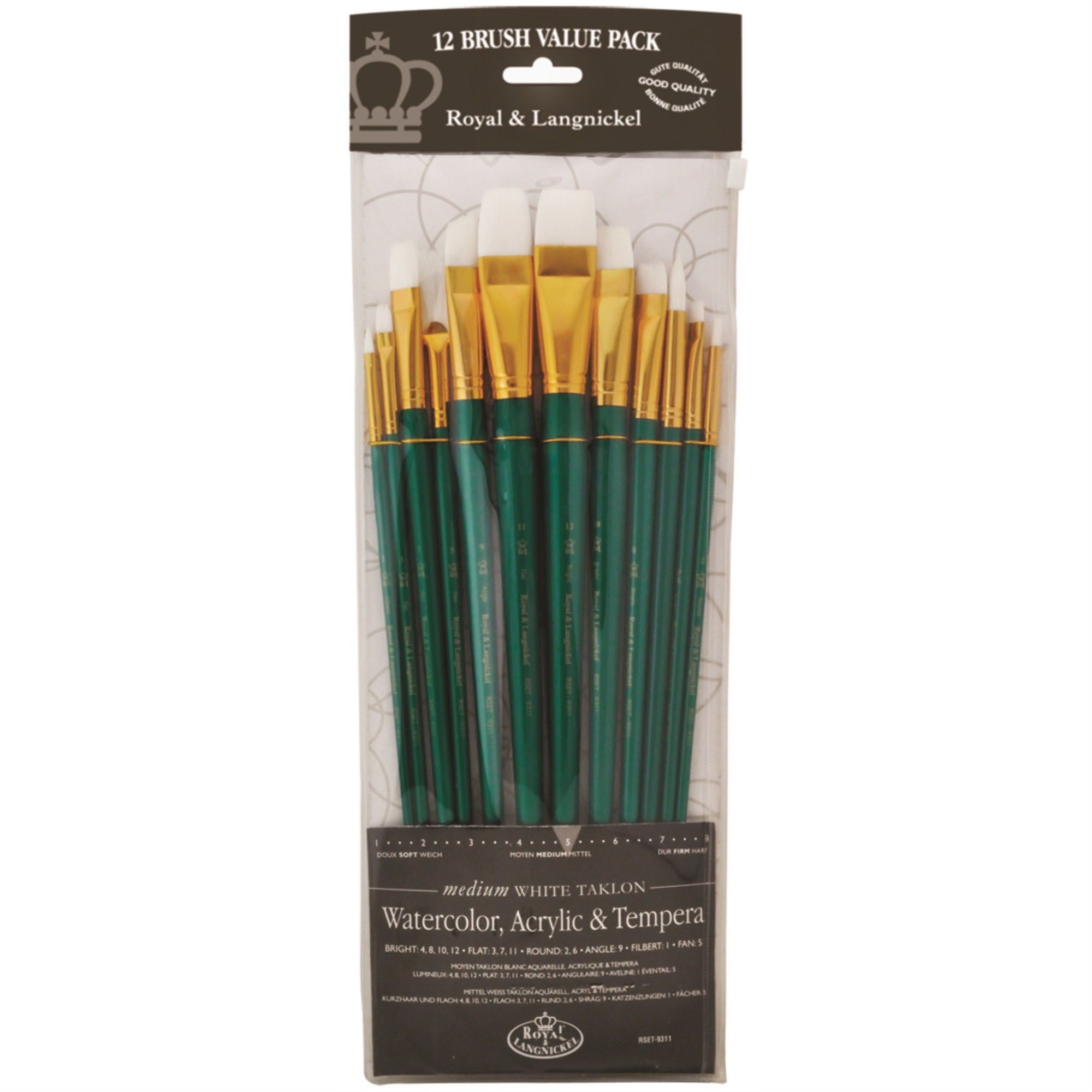 Ryrset-9311, Valupak 12Pc Wht Tkln Flt L/H. Manufactured By Royal Brush. This Economical Brush Set Is Ideal For Classrooms, Workshops, Studio Spaces And Craft Rooms.