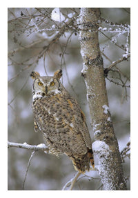 Great Horned Owl In Its Pale Form Perching In A Snow-Covered Tree, British Columbia, Canada-Paper Art-18X26