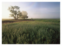 Oak Trees Shrouded In Fog, Tallgrass Prairie In Flint Hills Taken Over By Invasive Great Brome Grass, Kansas-Paper Art-34X26