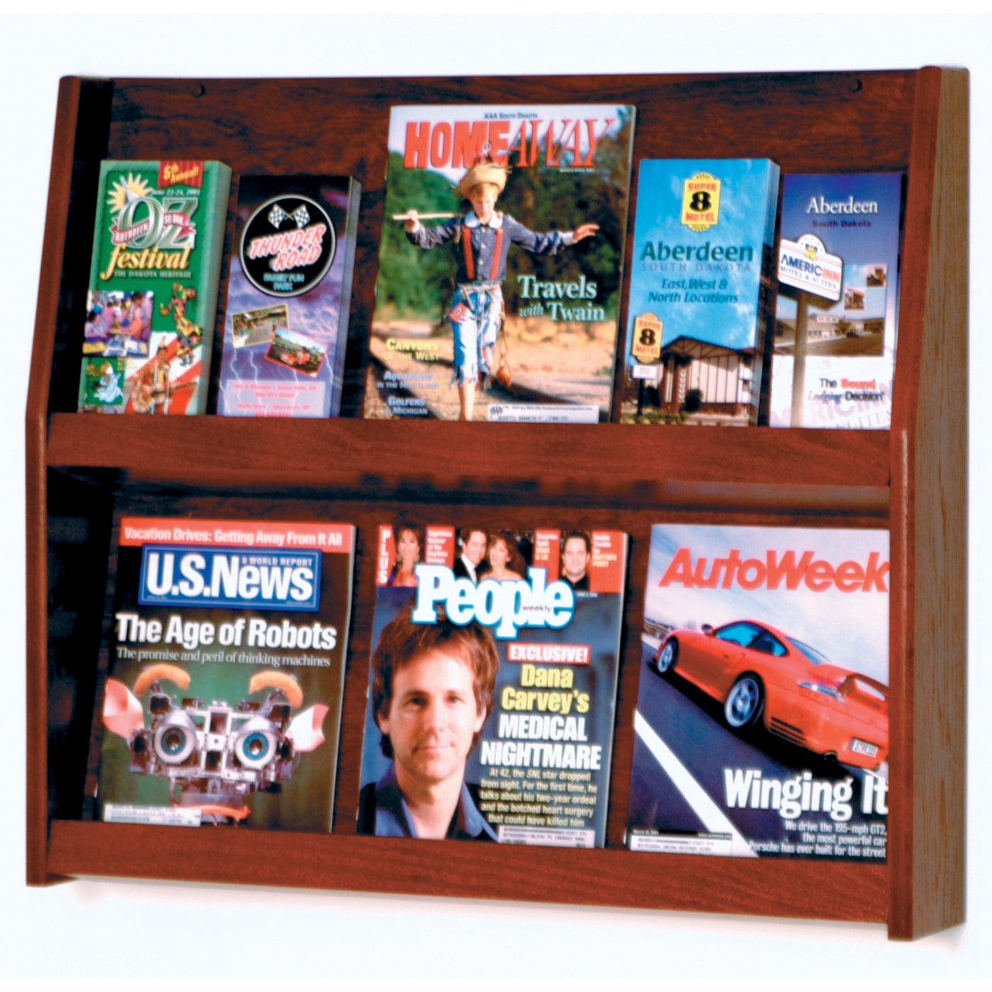 Wooden Mallets Slope Literature Displays Offer A Classic And Beautiful Way To Display Your Literature. Slanted Back And Shelves Allow Full View Of Literature While Keeping It Neat And Organized. Removable Dividers Keep Contents Neat And Orderly, Allowing You To Display Brochures, Magazines And Wider Literature. Slope Displays Feature Furniture Quality Construction With 3/4 Solid Oak Sides Sealed In A Durable State-Of-The-Art Finish. This Unit Is Available In Three Designer Colors To Coordinate With Any Dcor - Light Oak, Medium Oak Or Mahogany. Displays Are Fully Assembled And Complete With Hardware For Simple Wall Mounting. Add Our Optional Accessory Legs To Create A Floor Display. Available Wood Finishes Perfectly Compliment Wooden Mallet'S Dakota Wave Reception Seating Collections. All Wooden Mallet Products Are Warranted For One Year Against Defects In Materials And Workmanship. Made In The Usa. Product Dimensions : 28.5W X 24.5H X 4.75D ,Weight : 16