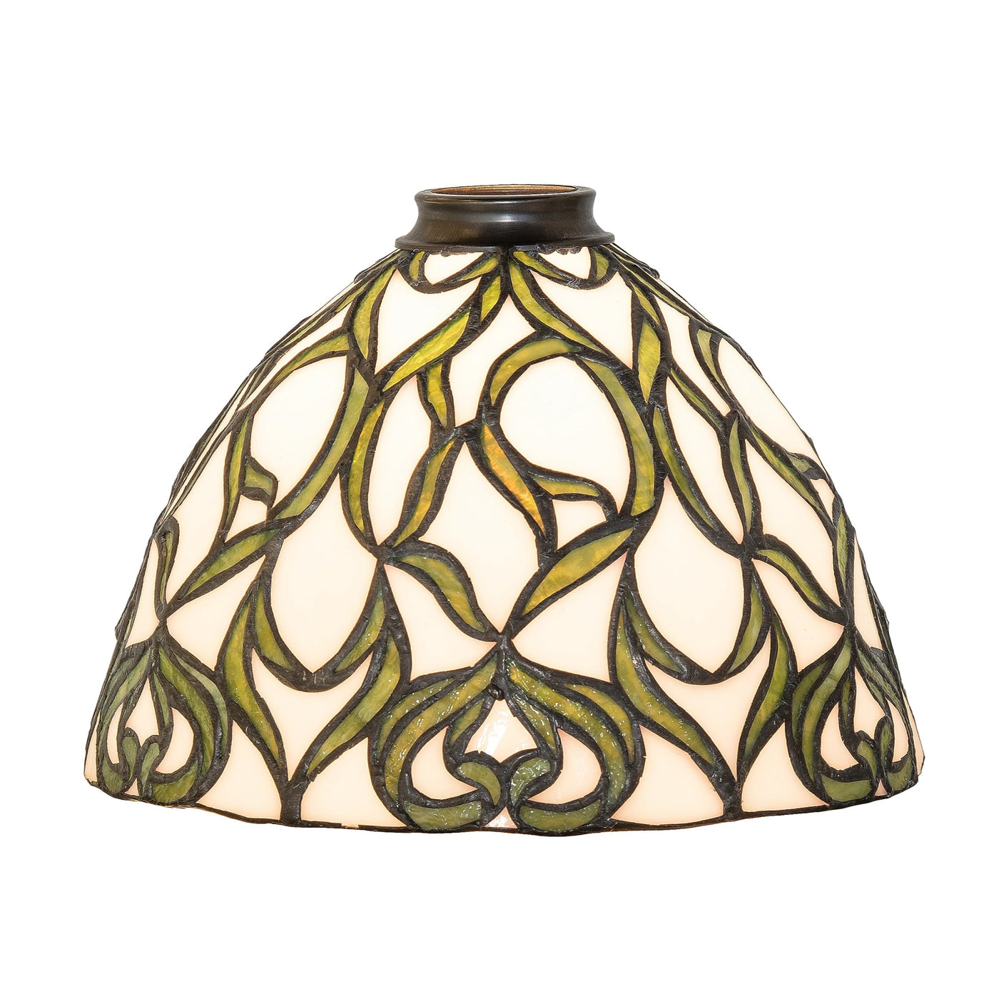 Spring Green Leaves And Vines With Tulip Medallion Accents Adorn This Splendid Whisper White Shade. The Stunning Shade Is Created Using The Famous Meyda Tiffany Copperfoil Construction Technique. The Shade Pairs Well With A Base To Create A Mini Lamp Or Matches With Hardware To Build A Mini Pendant. The Grand Tulip Medallion Shade Is Featured In Our American-Designed; Handcrafted Stained Glass Lighting Collection. Each Shade Is A Unique Work Of Art With Color Variations Based On Natural Ingredients Inherent In The Glass.