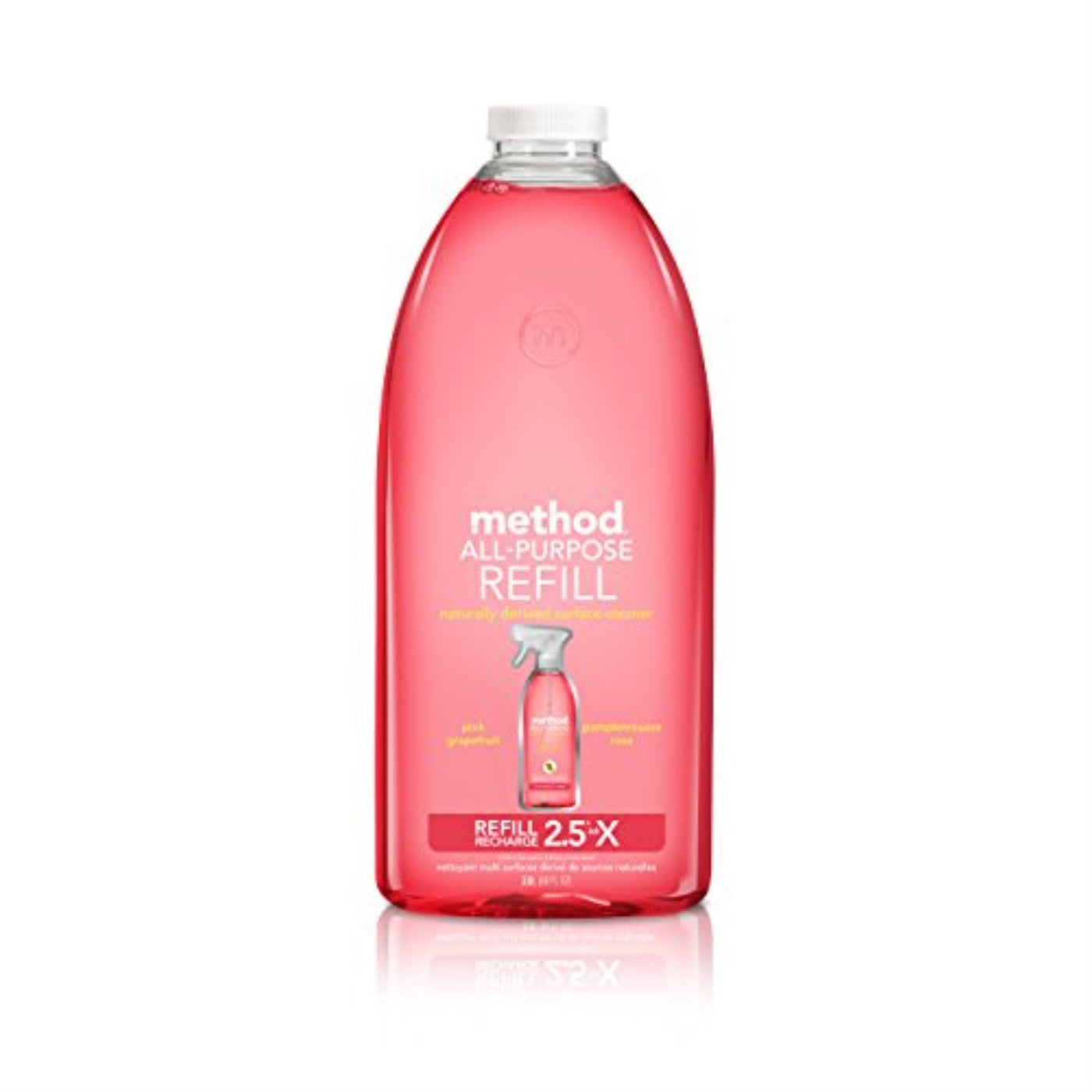Method All-Purpose Cleaner Refill, Pink Grapefruit, 68 Fluid Ounce Grease And Grime Don?T Stand A Chance. Not With The Cutting-Edge Green Chemistry Of Powergreen Technology In Your Grasp. Each Squirt, In All Its Lovely Non-Toxic Glory, Delivers A Mighty Cleaning Punch With Naturally Derived, Biodegradable Ingredients. Its Cleaners, Derived From Corn And Coconut, Break Down Dirt Naturally, So Every Spray Leaves Nothing Behind But A Fresh Scent And Gleaming Clean. Knock Out Dirt With The Power Of Plants. Contains (1) 68 Ounce Refill Bottle Of All Purpose Surface Cleaner , Naturally Derived All Purpose Surface Cleaner Puts The Hurt On Dirt , Cutting Edge Green Chemistry Of Powergreen Technology Harnesses The Strength Of Non Toxic Ingredients For Surface Specific Cleaning Performance , Non Toxic, Biodegradable Ingredients Leave Nothing Behind But A Fresh Scent And Gleaming Clean , Cleans Most Non Porous Surfaces Including Counters, Tile, Stone, Wood And Glass