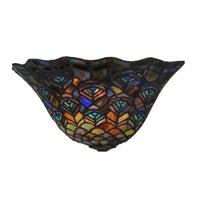 144898 12.5'W Peacock Feather Wall Sconce Manufacturer By Meyda. As Distinctive As A Beautiful Peacock'S Feathers; No Two Shades Will Ever Be The Same As Their Individuality Can Be As Remarkably Unique As Their Personality. This Artistic Creation Utilizes Swirling Opalescent Art Glass Background Combinations Including Beige Amber; Yellow Pinks; Red Purples; Golden Blues And Greens; Ivories; Bluish Whites; Turquoise Blues; Periwinkle; Olive And Spring Greens; Pale Yellow; Amethyst; Emerald And Topaz. The Eye Of The Plumage Design Reveals Purples; Pastel Blues; Teals; Cobalt And Ivories. Individual Pieces Of Glass Are Hand Cut And Wrapped Using Meyda Tiffany'S Famous Copperfoil Construction. Each Shade Is A Unique Work Of Art With Color Variations Based On Natural Ingredients Inherent In The Glass. Lens Color : Ruby;Sunflower;Amber Glass (Not Mica);Green;Blue, Made In China