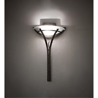 This Rustic-Styled Wall Sconce Features A Wispy White Frosted Glass Crescent-Shaped Glass Shade Resting On A Smoke-Finished Frame. The Warm Tones And Hammered Metal Blend With A Unique Contemporary Style; Making This Fixture Perfect For Various Interior Decors. This Wall Fixture Is Ideal For Illuminating Corridors And Foyers In Fine Residences; Restaurants; And Hotels From Charlotte; North Carolina; To Columbus; Ohio; To Phoenix; Arizona. The Rustic Range Wall Sconce Is Included In Our American-Designed Contemporary Lighting Collection. Ul And Cul Listed For Dry And Damp Locations.