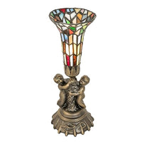 13' High Stained Glass Pond Lily Twin Cherub Mini Lamp