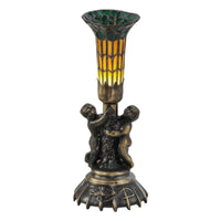 13'H Twin Cherub Tiffany Pond Lily Mini Lamp