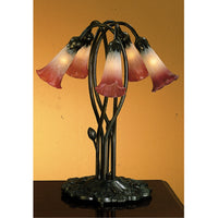 16012 16.5'H Pink/White Pond Lily 5 Lt Accent Lamp Manufacturer By Meyda. One Of The Most Popular Louis Comfort Tiffany Styled Lamps On The Market Today; Recreating His Famous Favrile Design From The Early 1900'S. This Softly Mottled Plum Pink And White Shaded 5 Light Accent Lamp Offers An Attractive; Delicate Design Featuring Shades Mouth Blown Of Fine Art Glass. Lily Shades Are Suspended From Stems Delicately Winding Above A Lily Pad Base Finished By Hand In Mahogany Bronze. Lens Color : Pink;Mauve;White, Made In China
