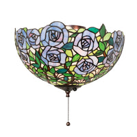 The Most Beloved Of All Floral Beauties. The Rosebush Is Beautifully Represented In This Stunning Reproduction Of A Tiffany Studio Classic Which Features Beautiful Blue Art Glass Roses That Ramble On A Maze Of Garden Green Leaves. The Luxurious Shade Is Created Using The Famous Meyda Tiffany Copperfoil Construction And Can Be Paired With A Standard Ceiling Fan. Fan Not Included. The Rosebush Fan Light Fixture Is Included In Our American-Designed; Handcrafted Stained Glass Lighting Collection. Ul And Cul Listed For Dry And Damp Locations. Each Fixture Is A Unique Work Of Art With Color Variations Based On Natural Ingredients Inherent In The Glass.