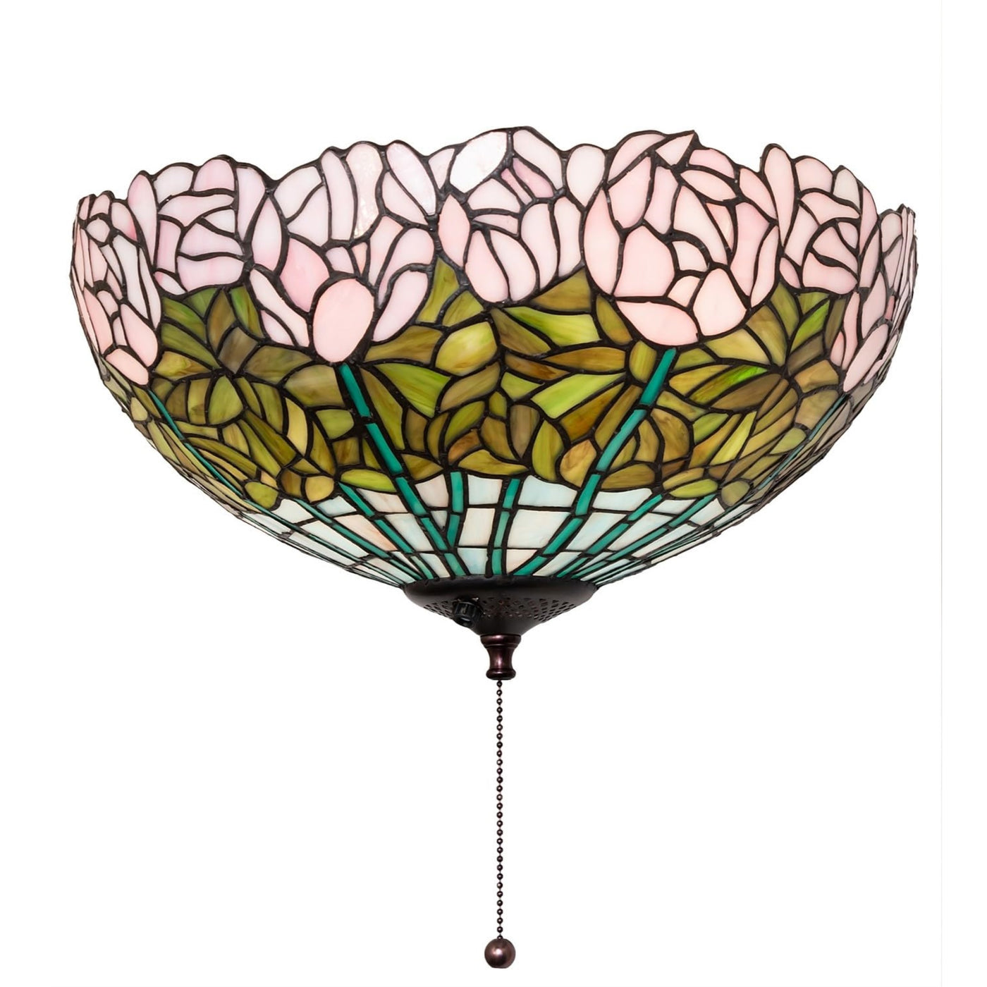A Wreath Of Full Blooming Passion Pink Cabbage Roses Circles This Beautiful Stained Glass Shade; Recreating A Design By The Louis Comfort Tiffany Studio. Bronzed Green Leaves And Stems Form A Pattern Against An Opal Sky In This Lovely Fan Light Fixture. The Stunning Shade Is Created Using The Famous Meyda Tiffany Copperfoil Construction Method And Can Be Paired With A Standard Ceiling Fan. Fan Not Included. The Tiffany Cabbage Rose Fan Light Fixture Is Included In Our American-Designed; Handcrafted Stained Glass Lighting Collection. Ul And Cul Listed For Dry And Damp Locations. Each Fixture Is A Unique Work Of Art With Color Variations Based On Natural Ingredients Inherent In The Glass.