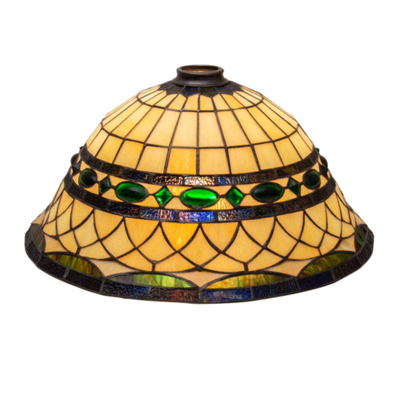 26275 16' Wide Tiffany Roman Shade Manufacturer By Meyda. Emerald-Colored Jewels And Multi Colored Granite Glass Bands Accent This Stunning Bone Beige Art Glass Reproduction Of A Famous Louis Comfort Tiffany Design. The Tiffany Roman Shade Is Inspired By Italian Art And Architecture And Handcrafted Of Authentic Stained Glass Using The Famous Meyda Tiffany Copperfoil Construction Method. The Shade Can Be Paired With A Base To Create A Stunning Table/Floor Lamp Or With Hardware To Build A Beautiful Ceiling Fixture. Lens Color : Green;Beige, Made In China