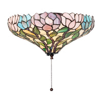Stylized Wisteria Flower Clusters In Petal Pink; Amethyst Blue And Dark Mauve With Jade Green Leaves And Dark Mauve Vines Drape Over The Beige Background Of This Shade. The Classic Styling Of Tiffany Art Glass And Soft Pastel Colors Will Add Charm To Any Room. The Stunning Shade Is Created Using The Famous Meyda Tiffany Copperfoil Construction Method And Can Be Paired With A Standard Ceiling Fan. Fan Not Included. The Wisteria Fan Light Fixture Is Included In Our American-Designed; Handcrafted Stained Glass Lighting Collection. Ul And Cul Listed For Dry And Damp Locations. Each Fixture Is A Unique Work Of Art With Color Variations Based On Natural Ingredients Inherent In The Glass.
